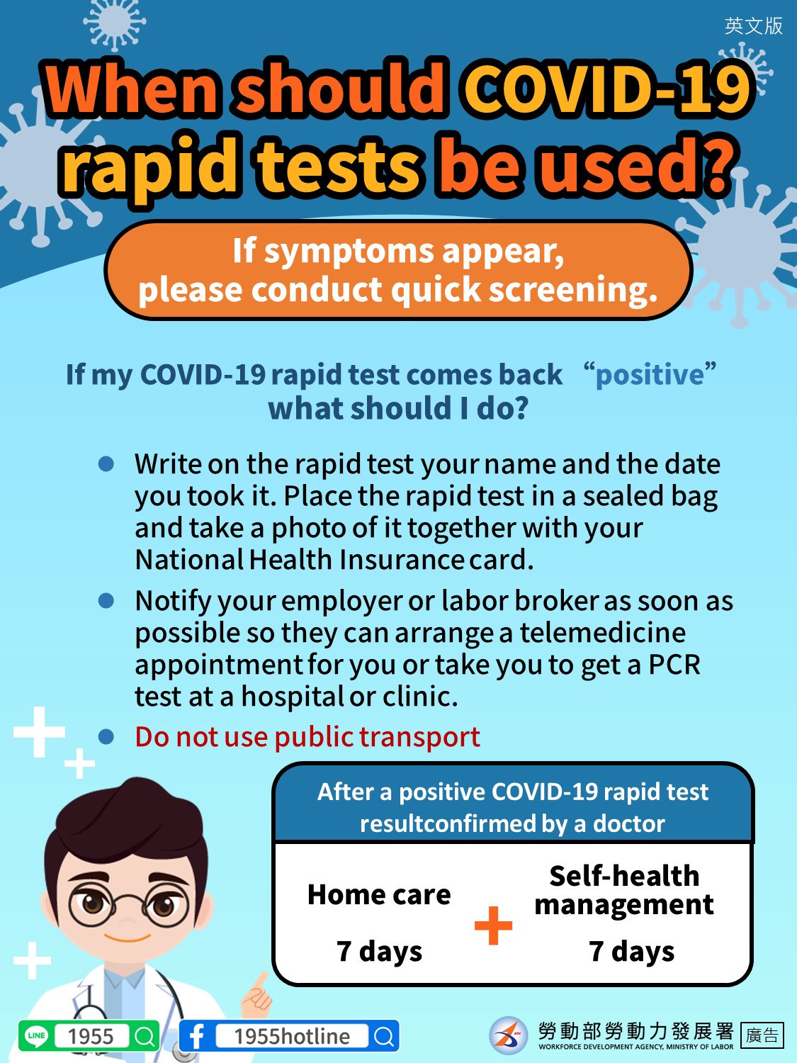 2. Notify your employer or labor broker as soon as possible so they can arrange a telemedicine appointment for you or take you to get a PCR test at a hospital or clinic.