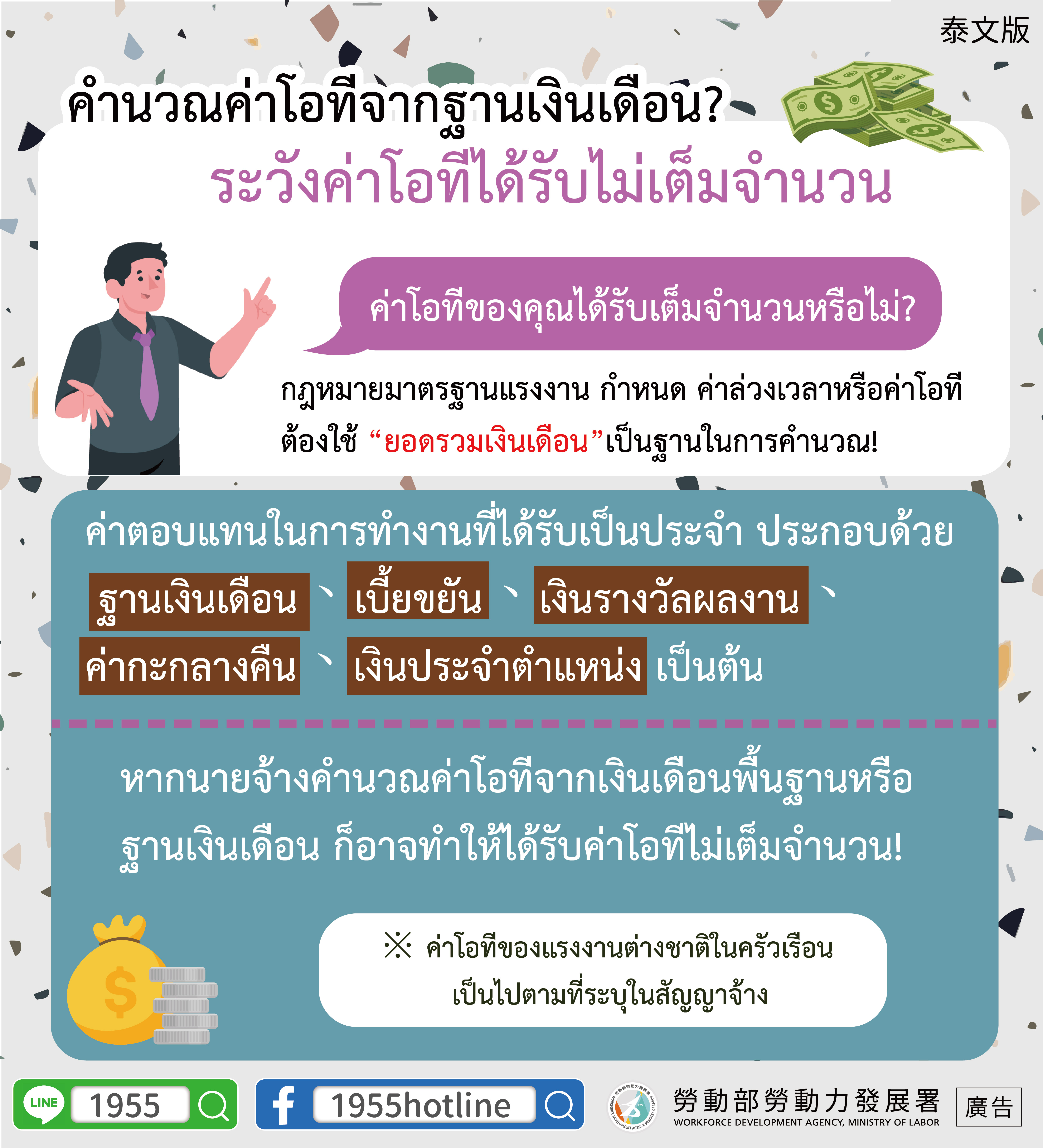 ※ ค่าโอทีของแรงงานต่างชาติในครัวเรือน เป็นไปตามที่ระบุในสัญญาจ้าง