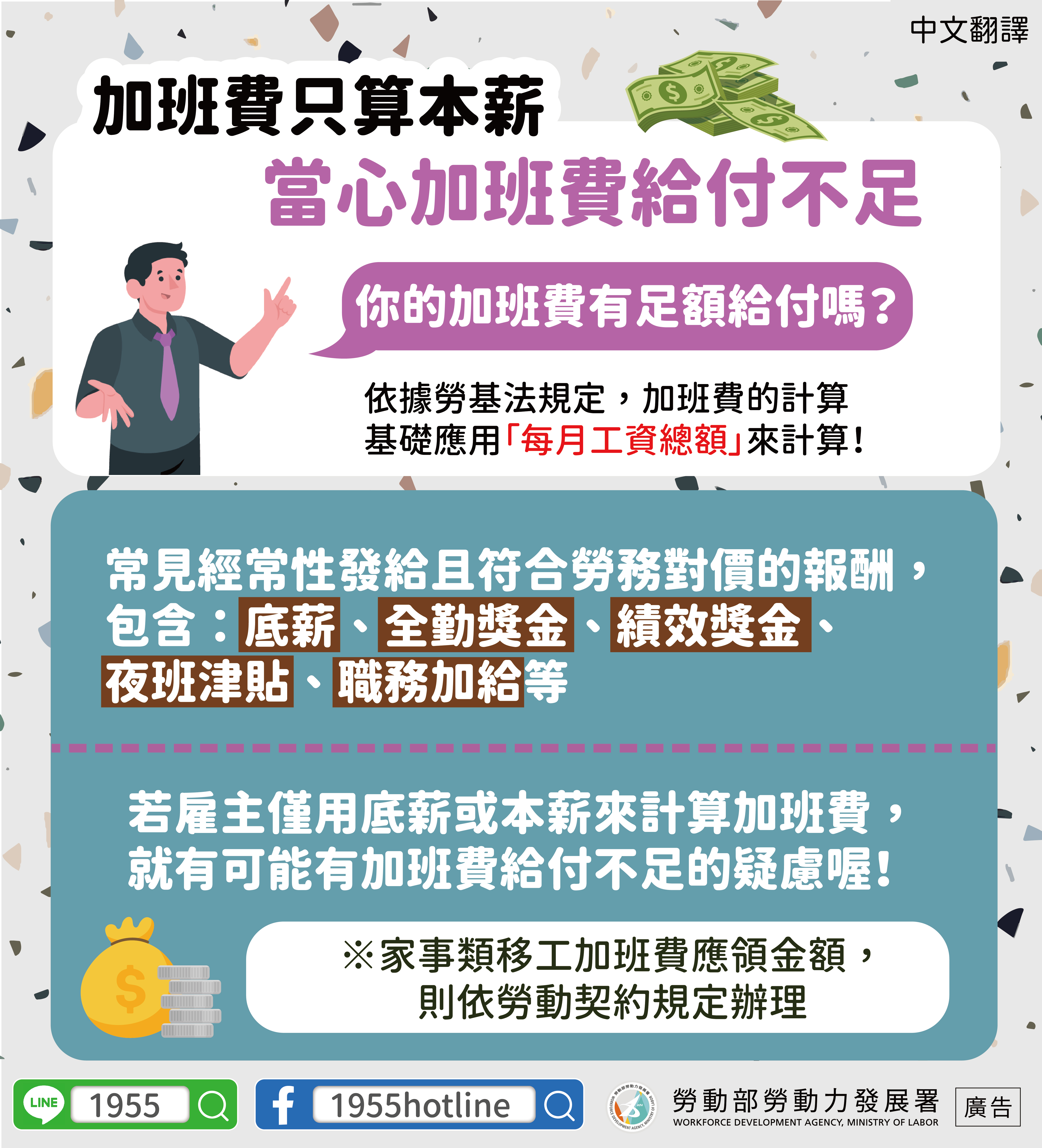 LINE@移點通-加班費只算本薪 當心加班費給付不足【加班費給付不足】-多國語言版