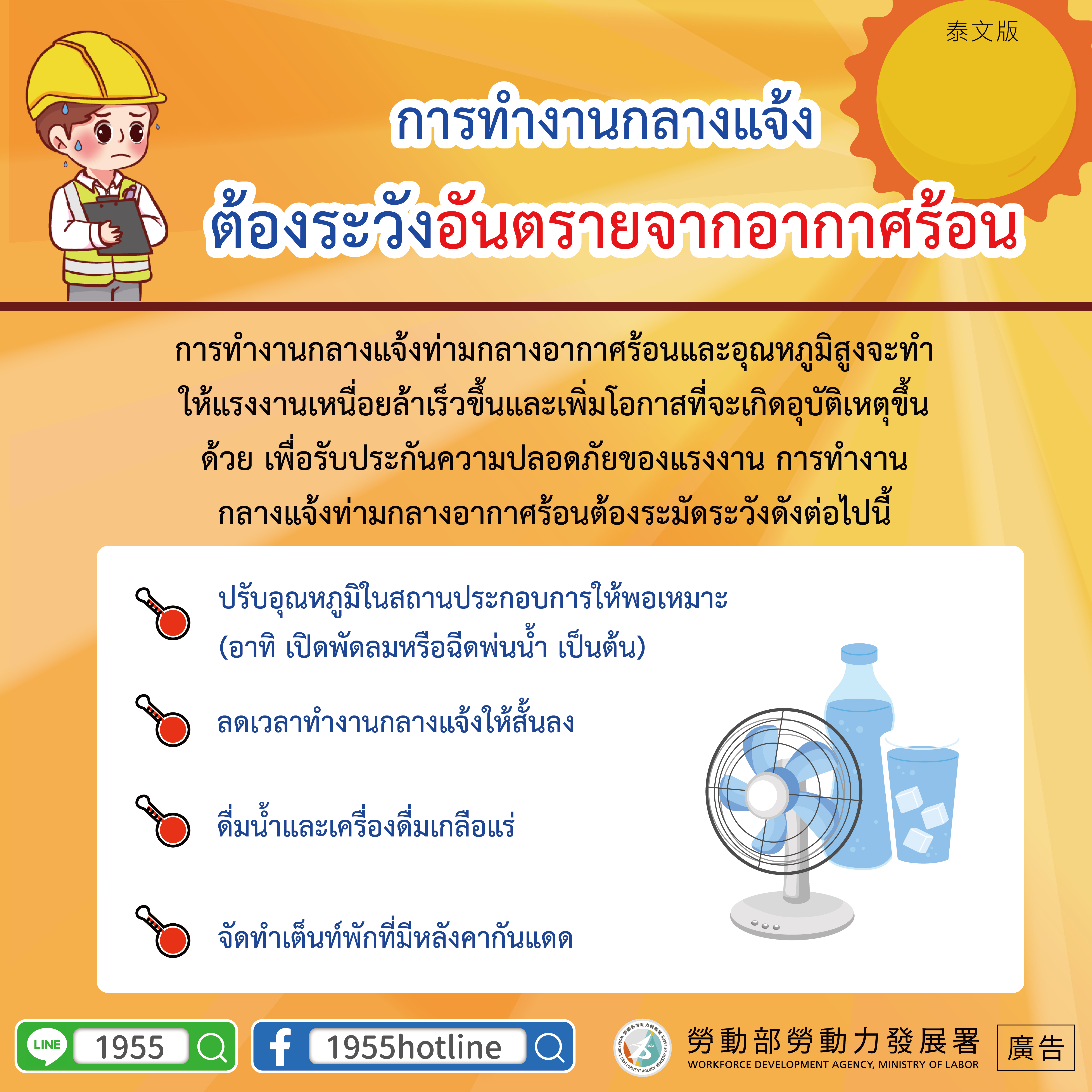 LINE@移點通-戶外工作 慎防熱傷害【熱傷害預防】-多國語言版