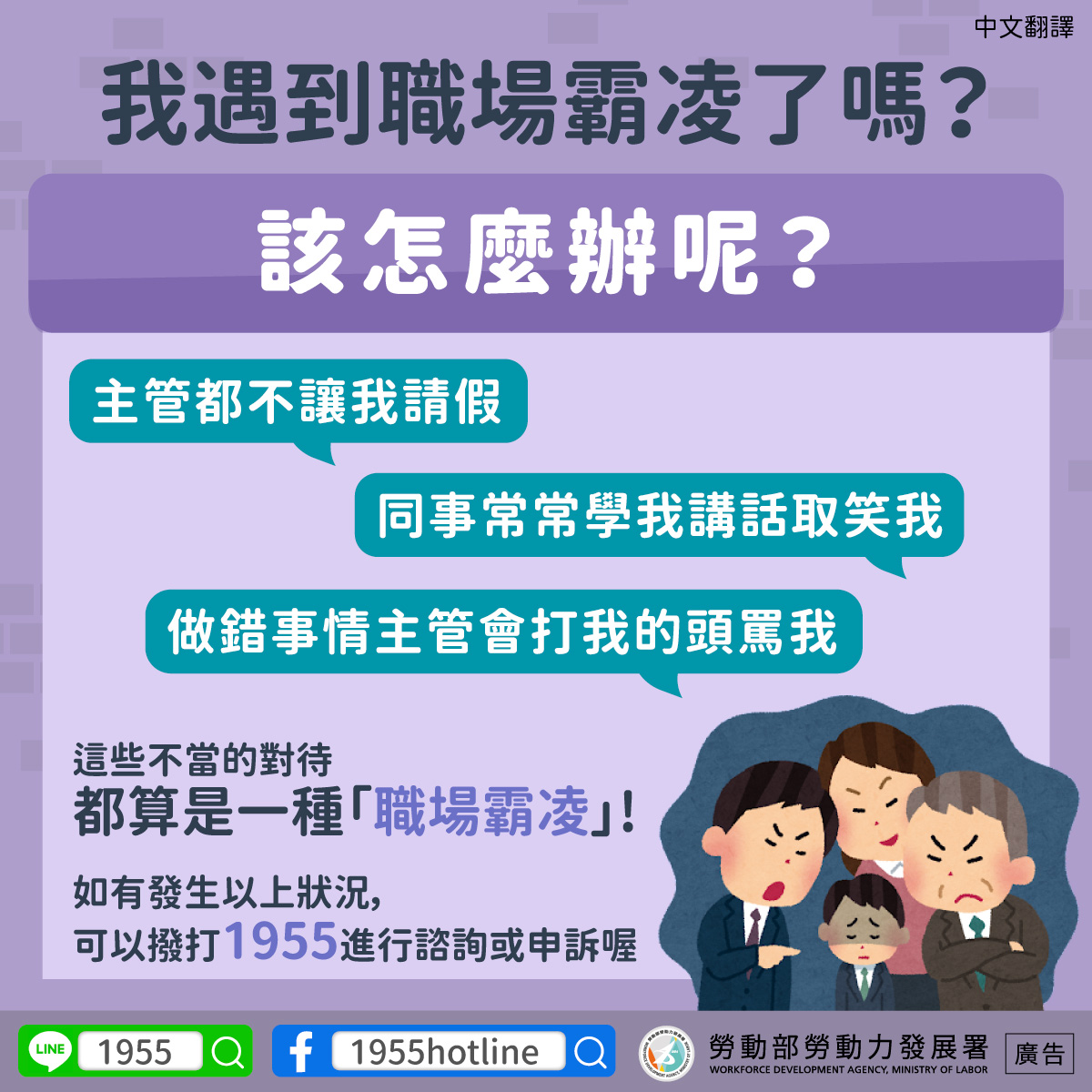 LINE@移點通-我遇到職場霸凌了嗎? 該怎麼辦呢?-多國語版本