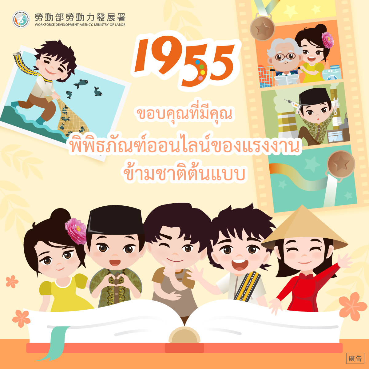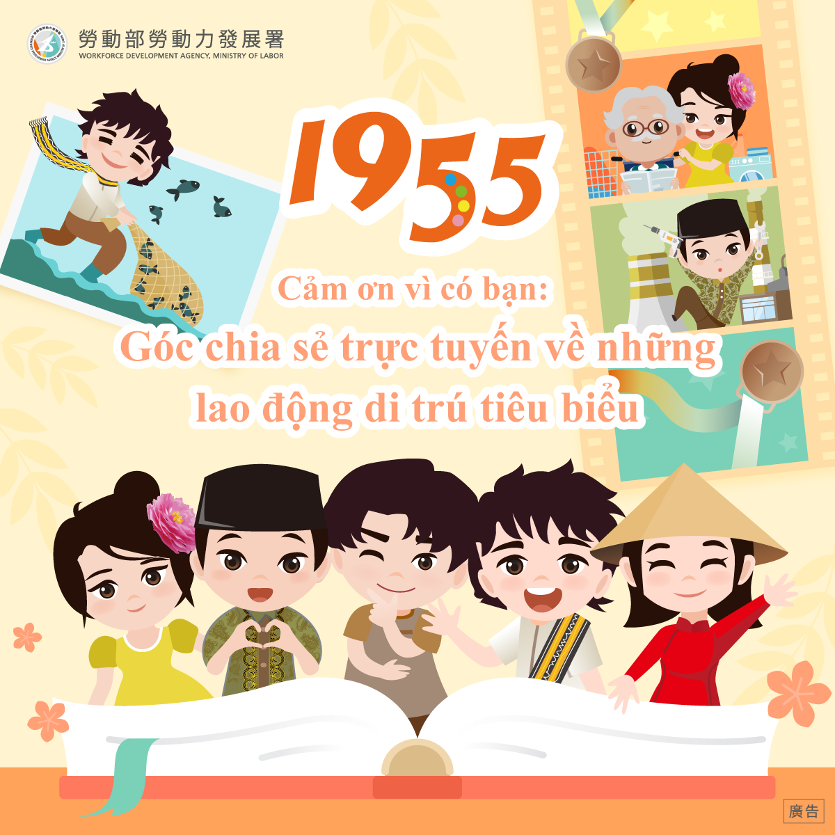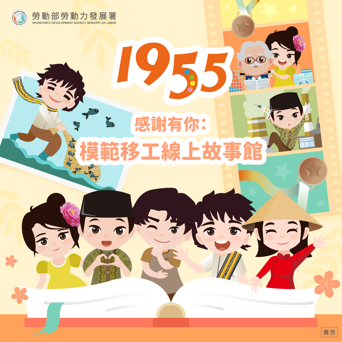 加入1955官方LINE帳號及1955 Hotline Facebook粉絲專頁,一起認識模範移工的感人故事!點擊進入「感謝有你:模範移工線上故事館」,欣賞他們在台灣努力付出的身影,一起給予肯定與支持!