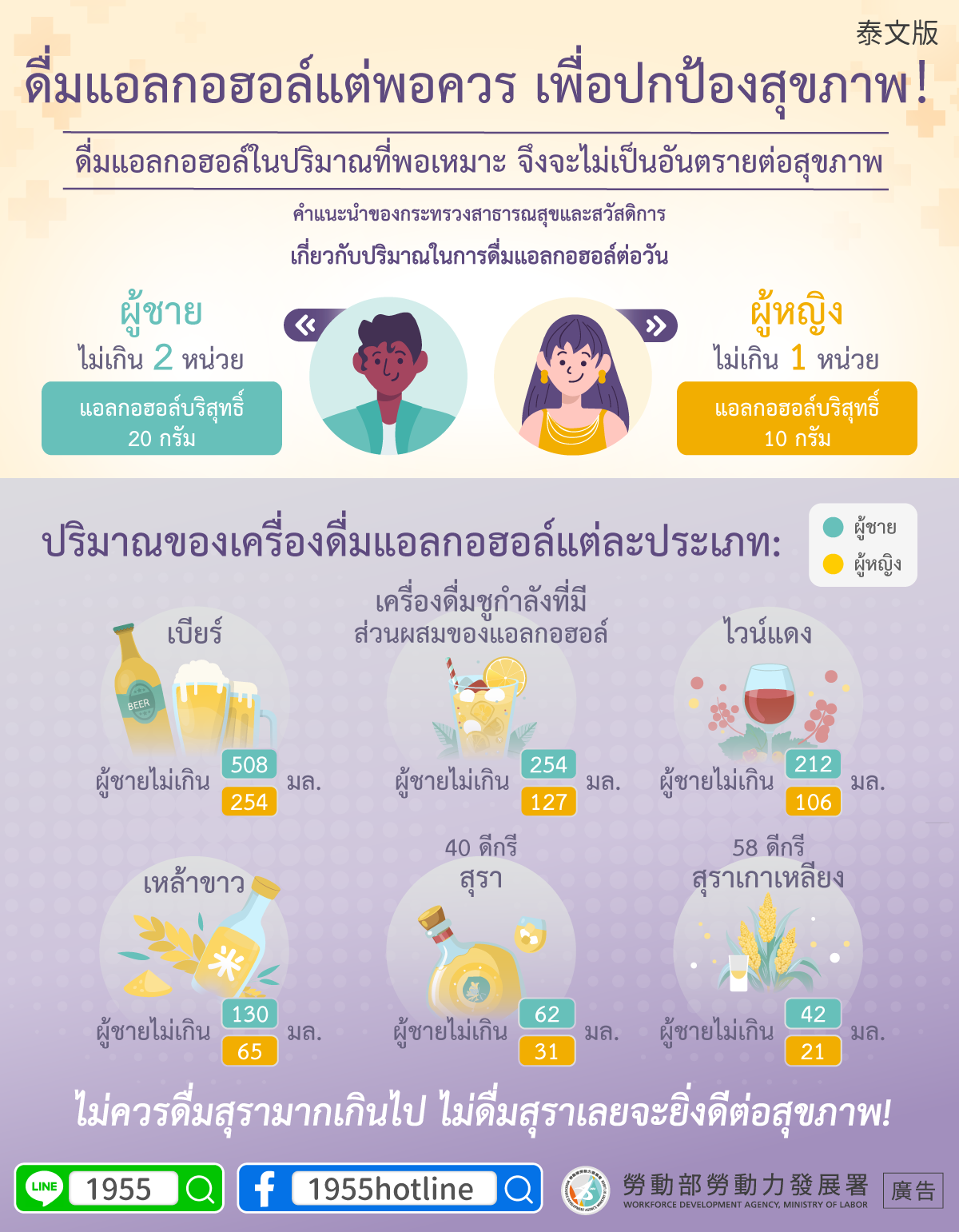 •ผู้ชายไม่เกิน 2 หน่วย -แอลกอฮอล์บริสุทธิ์20 กรัม