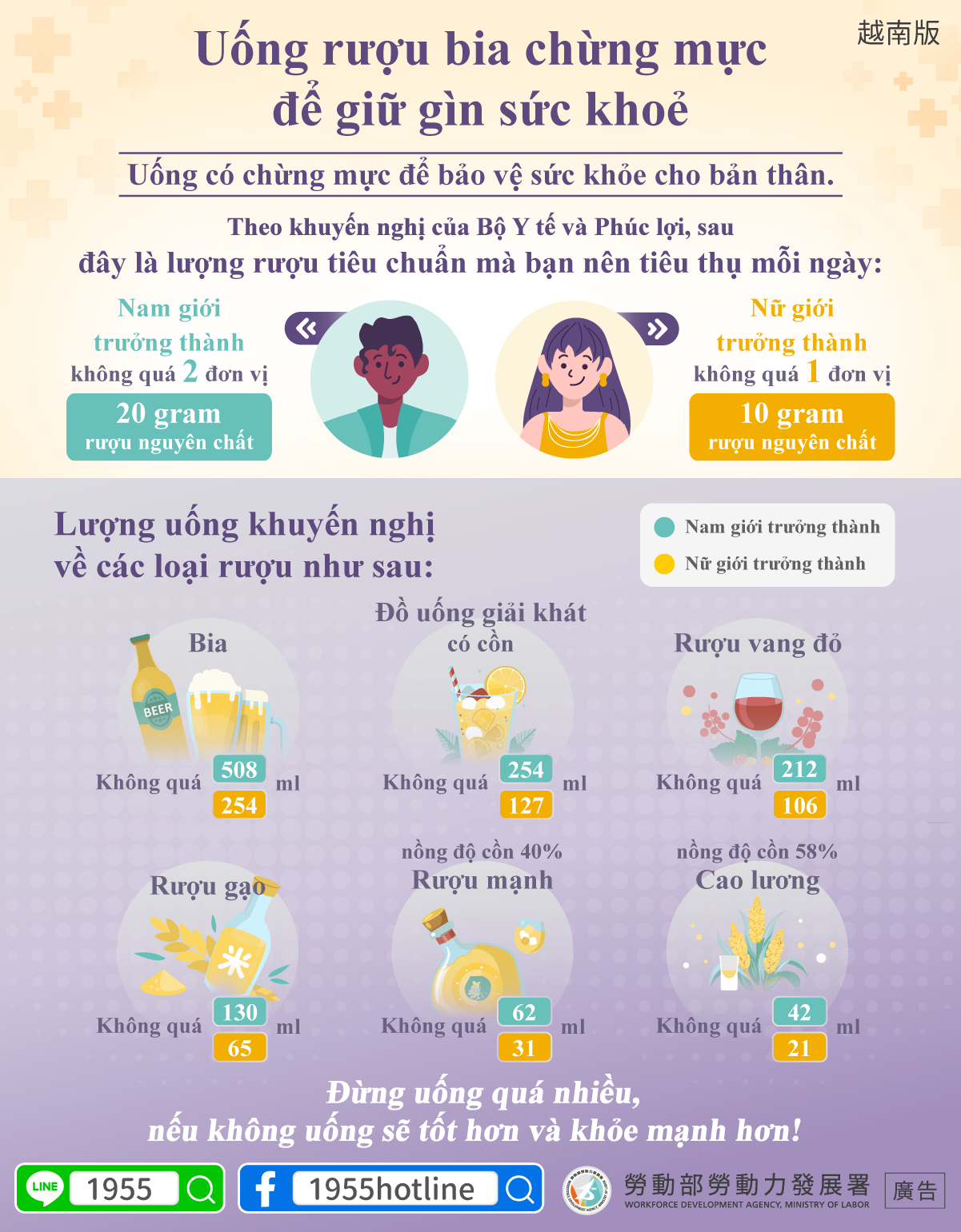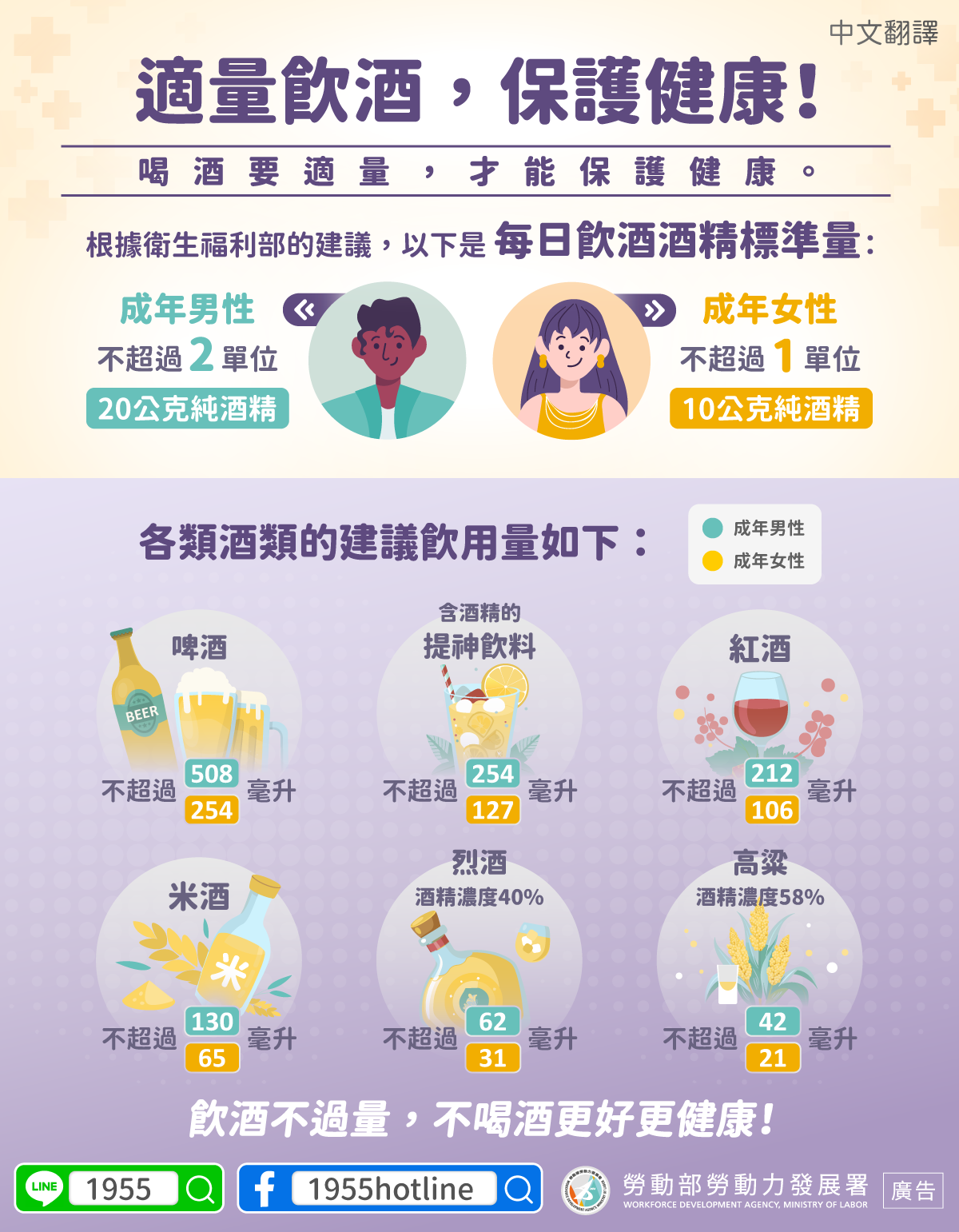 LINE@移點通-適量飲酒,保護健康!【每日酒精攝取標準量】-多國語言版