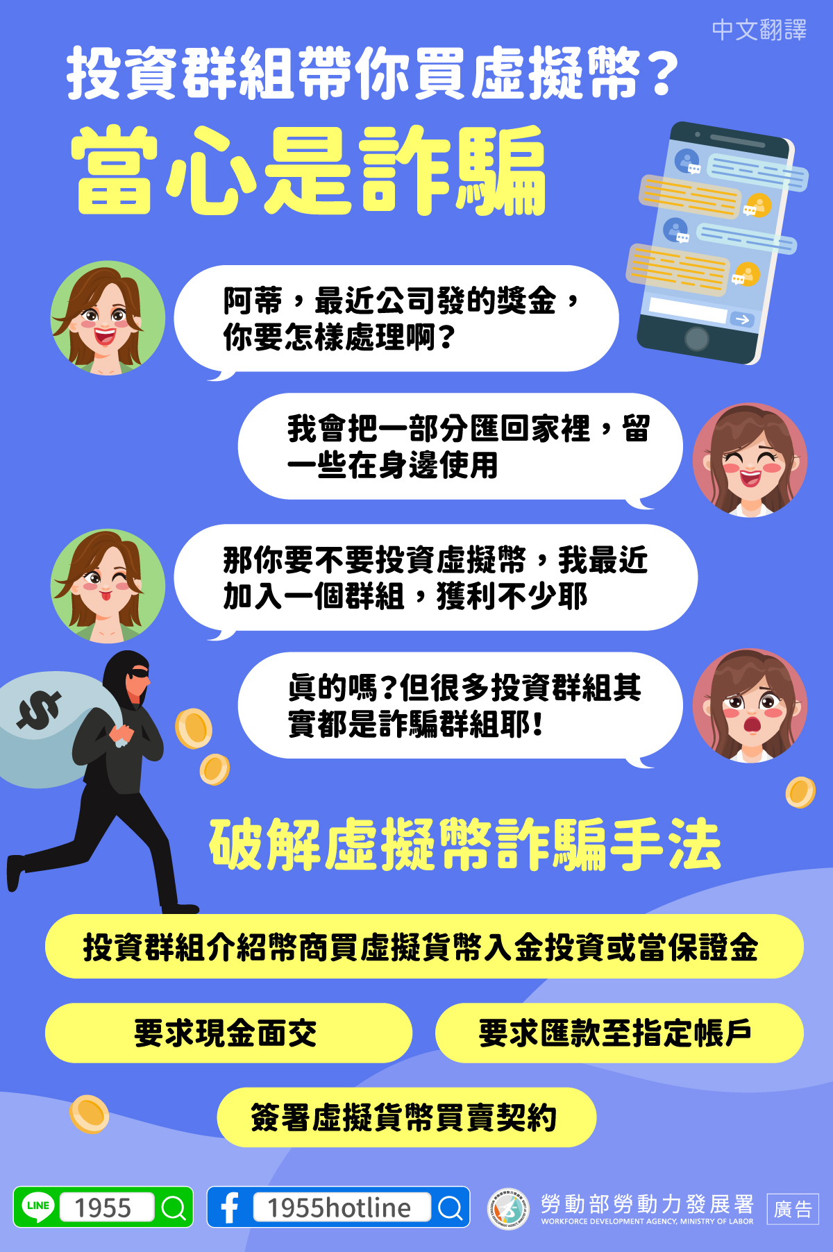 LINE@移點通-投資群組帶你買虛擬幣?當心是詐騙【虛擬幣投資詐騙】-多國語言版