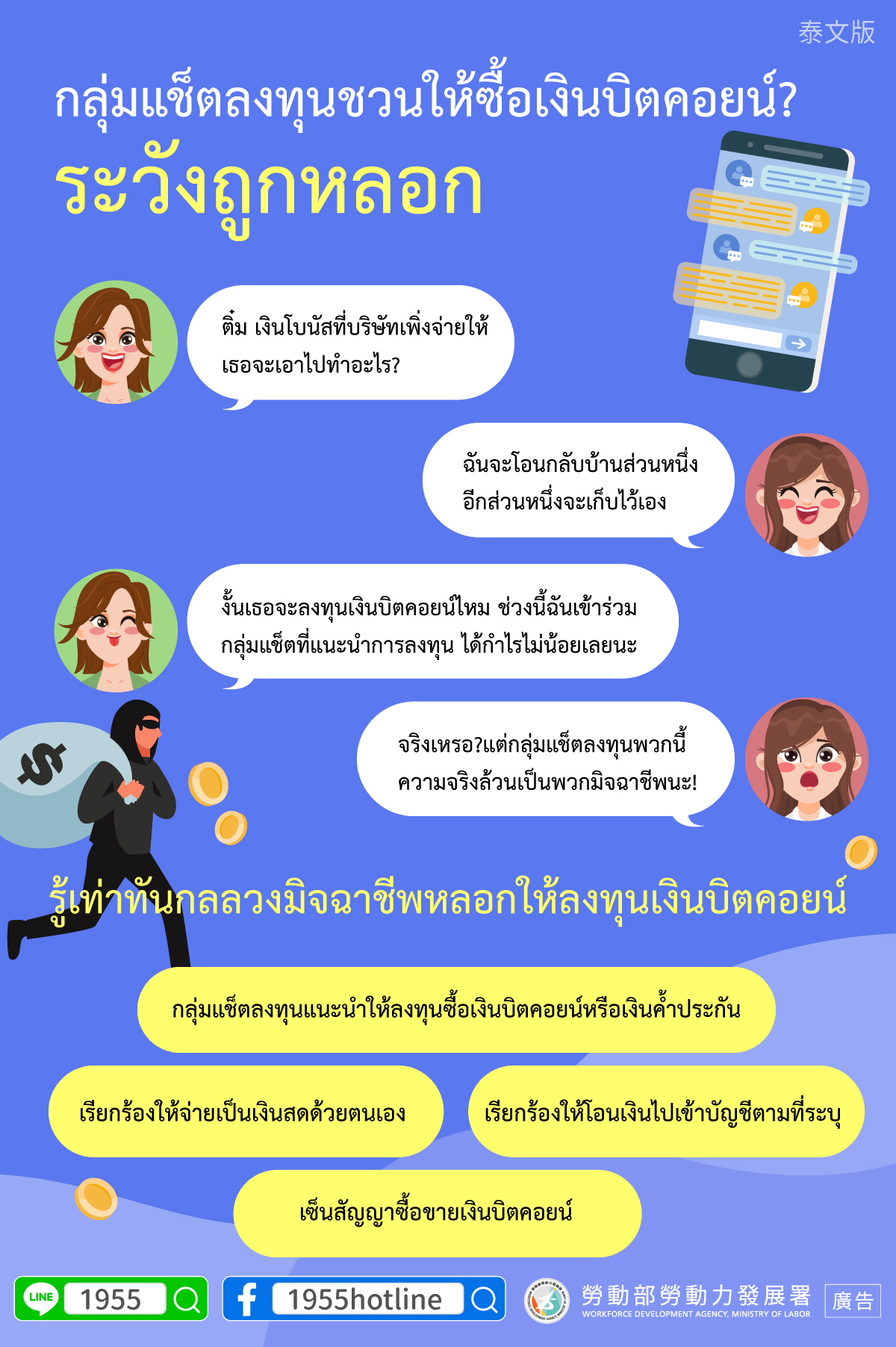 ▍กลุ่มแช็ตลงทุนชวนให้ซื้อเงินบิตคอยน์? ระวังถูกหลอก