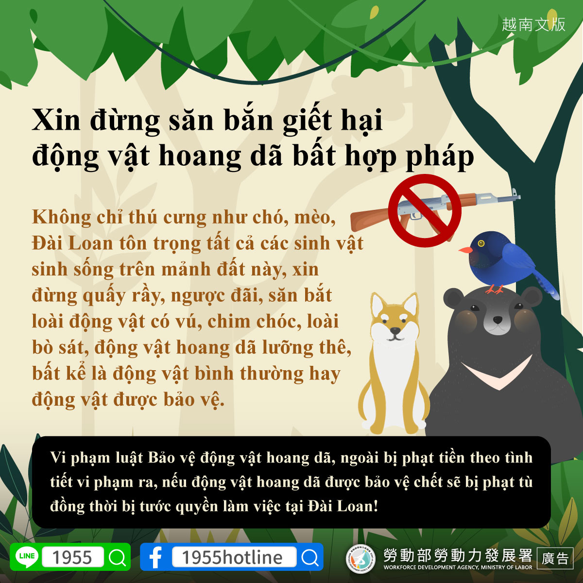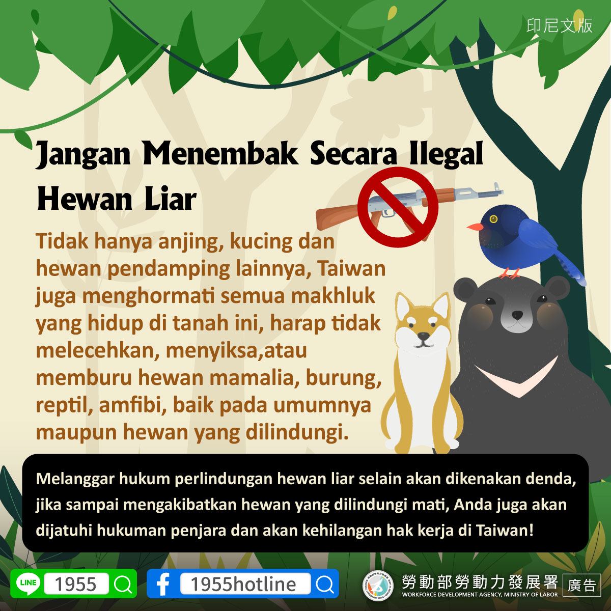 Melanggar hukum perlindungan hewan liar selain akan dikenakan denda, jika sampai mengakibatkan hewan yang dilindungi mati, Anda juga akan dijatuhi hukuman penjara dan akan kehilangan hak kerja di Taiwan!