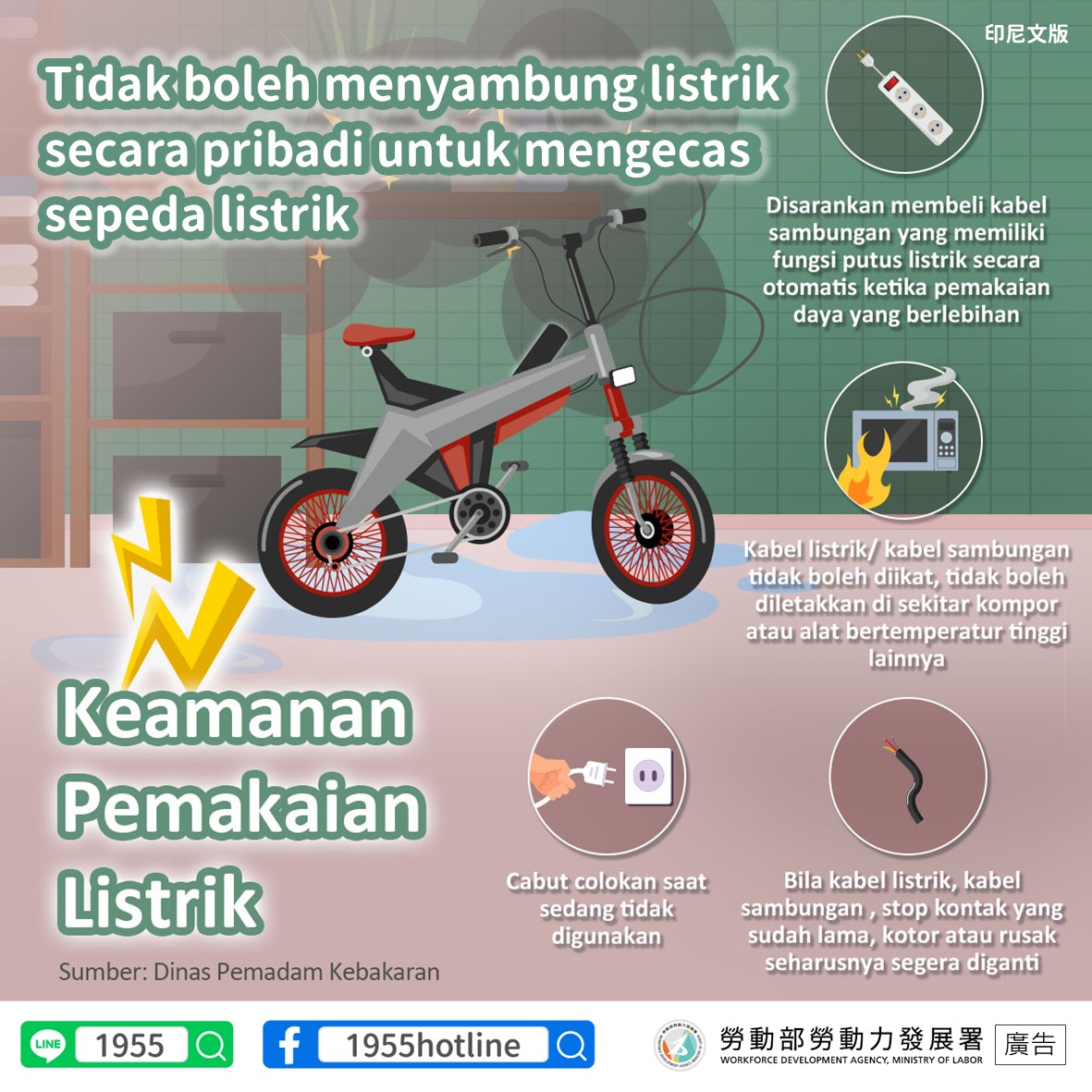 Tidak boleh menyambung listrik secara pribadi untuk mengecas sepeda listrik