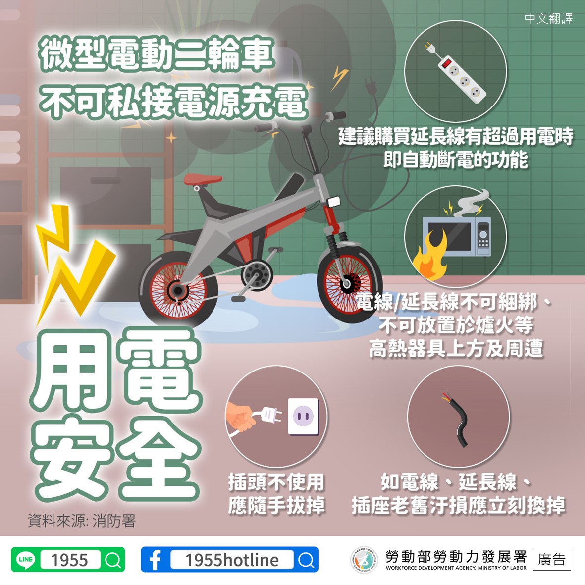 LINE@移點通-【用電安全】微型電動二輪車不可私接電源充電