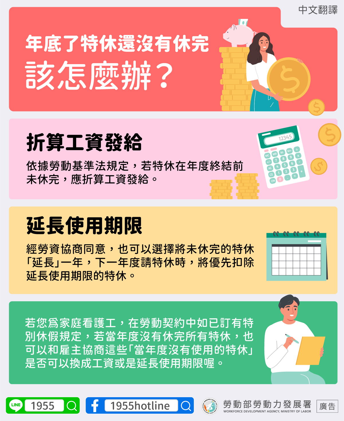 LINE@移點通-年底了特休還沒有休完該怎麼辦?【特休結算】-多國語言版