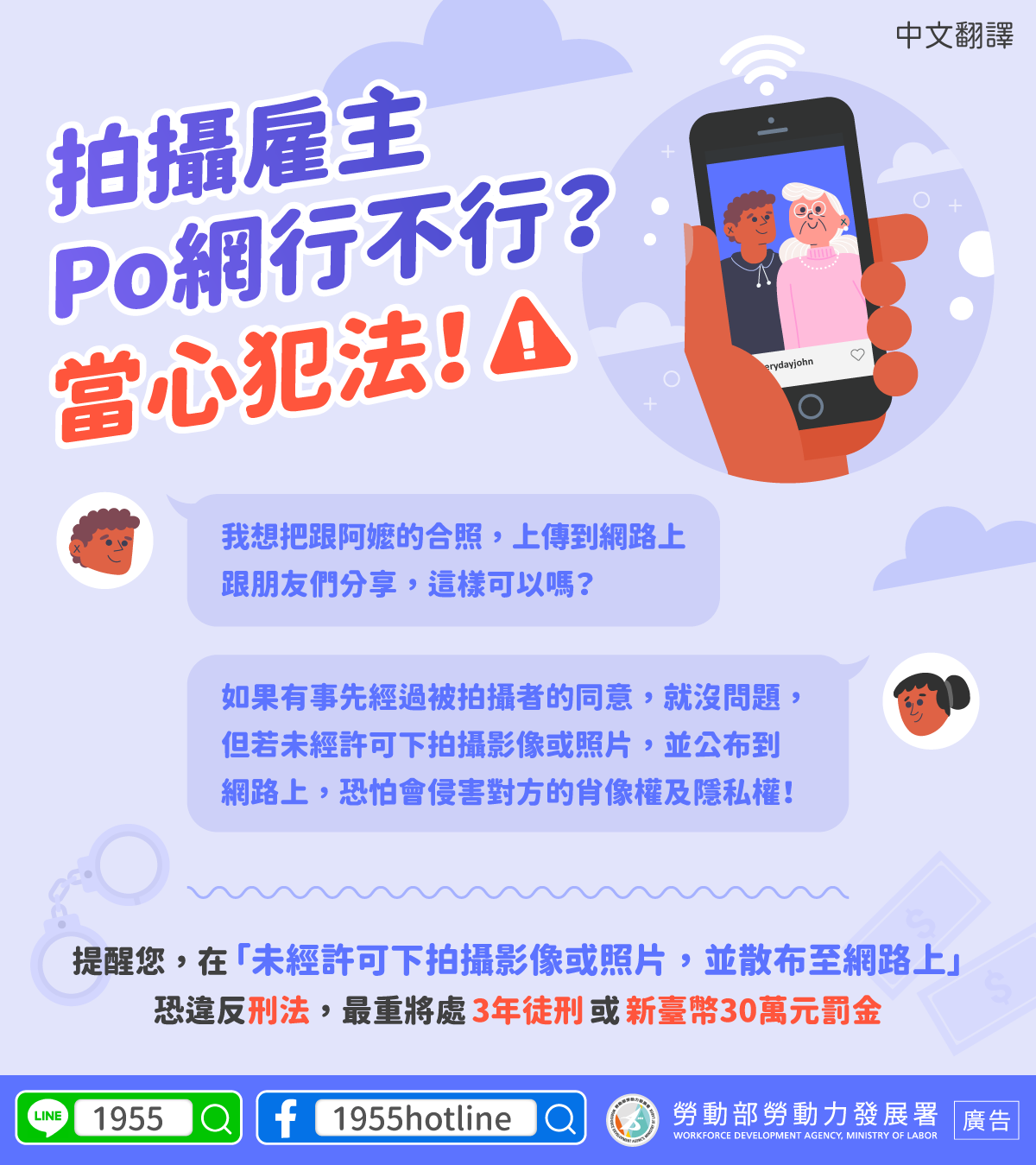 LINE@移點通-拍攝雇主當心犯法!Po網行不行?【拍攝雇主Po網行不行?】-多國語言版