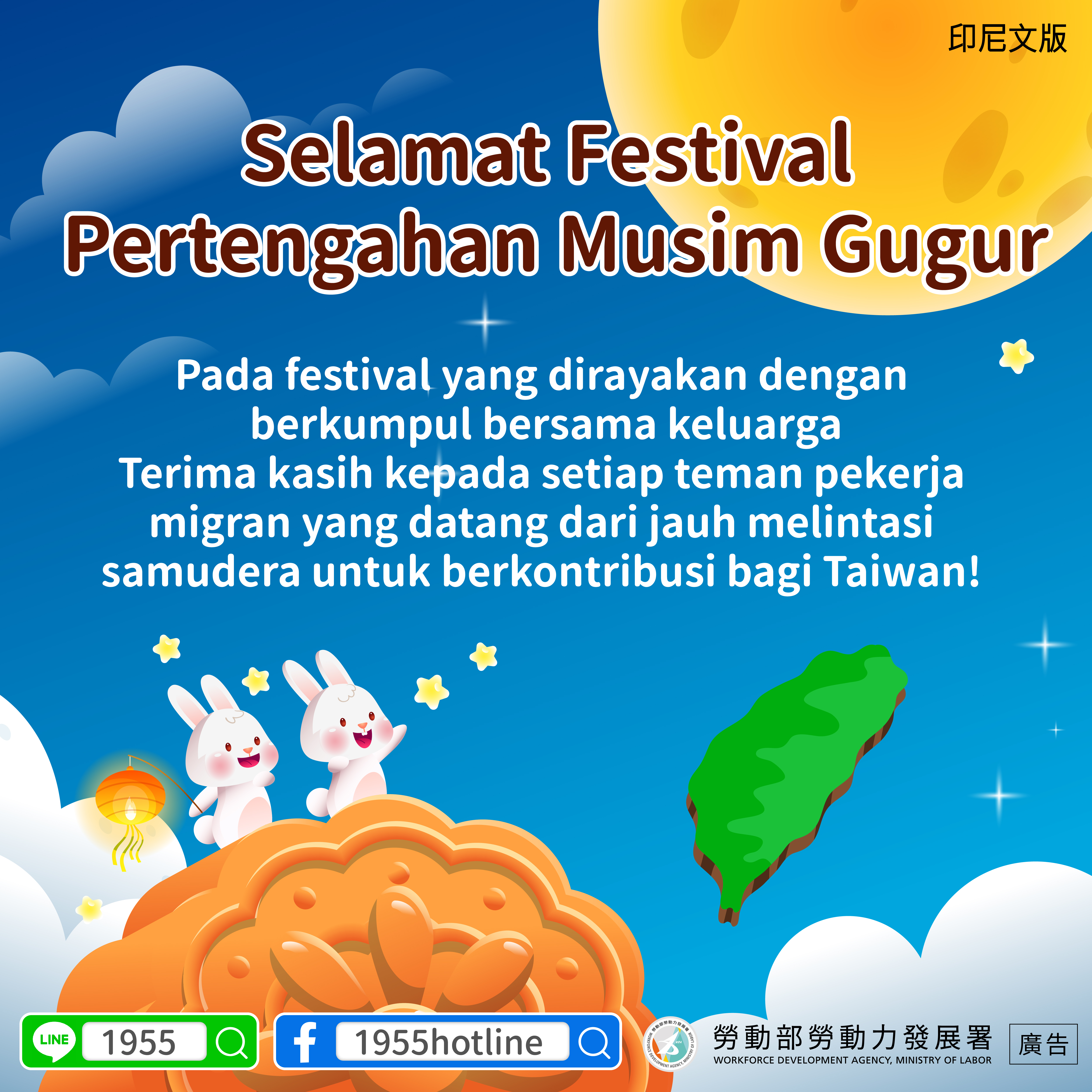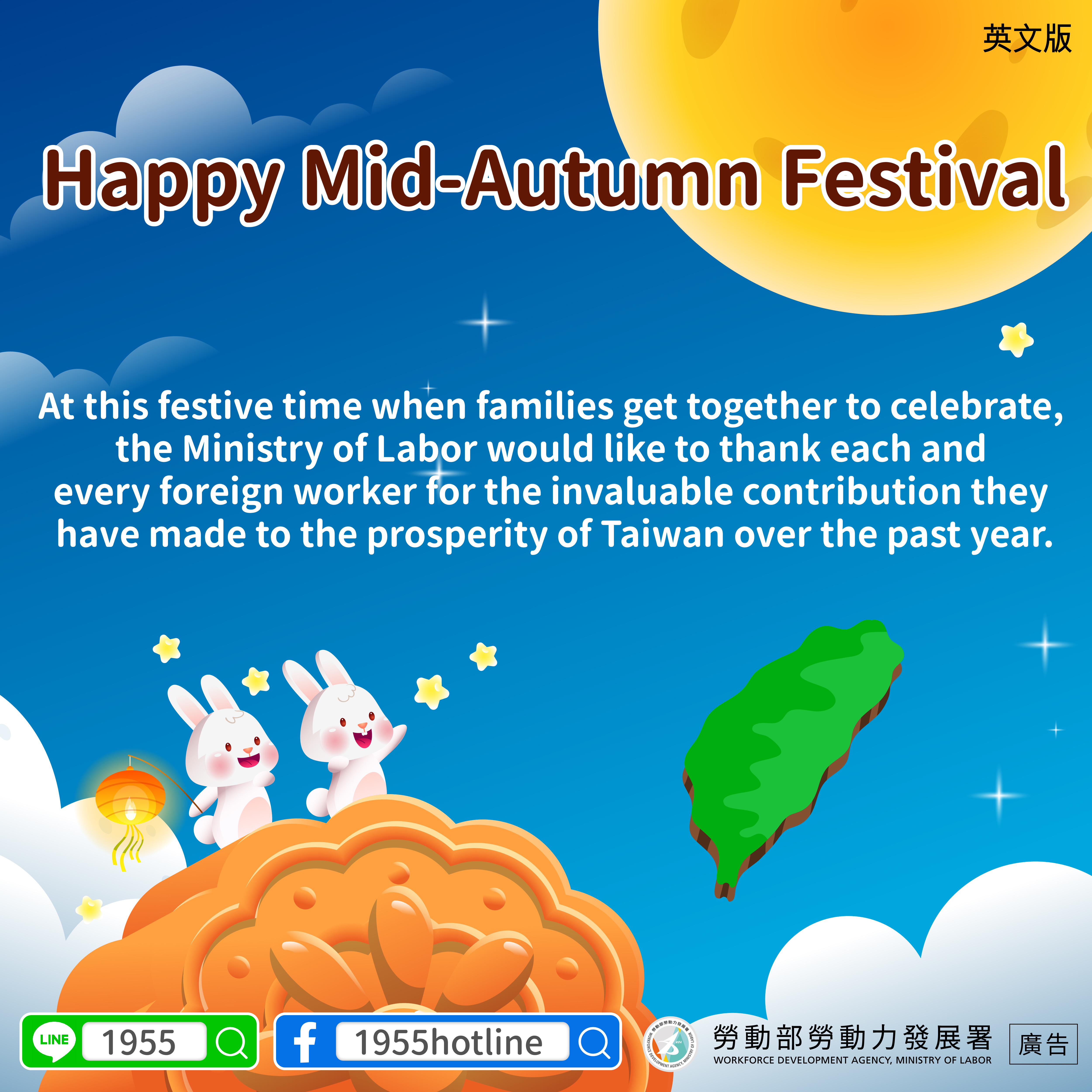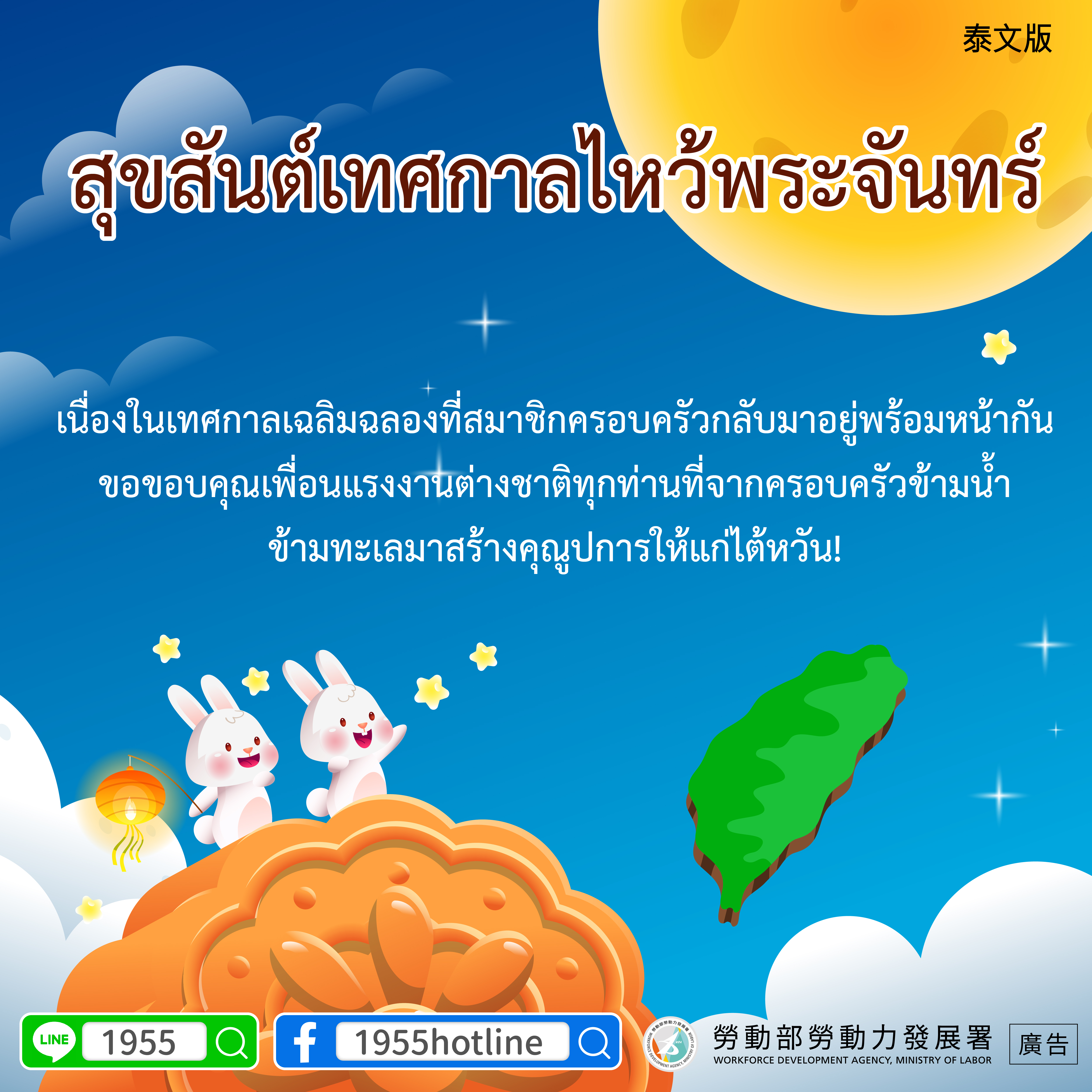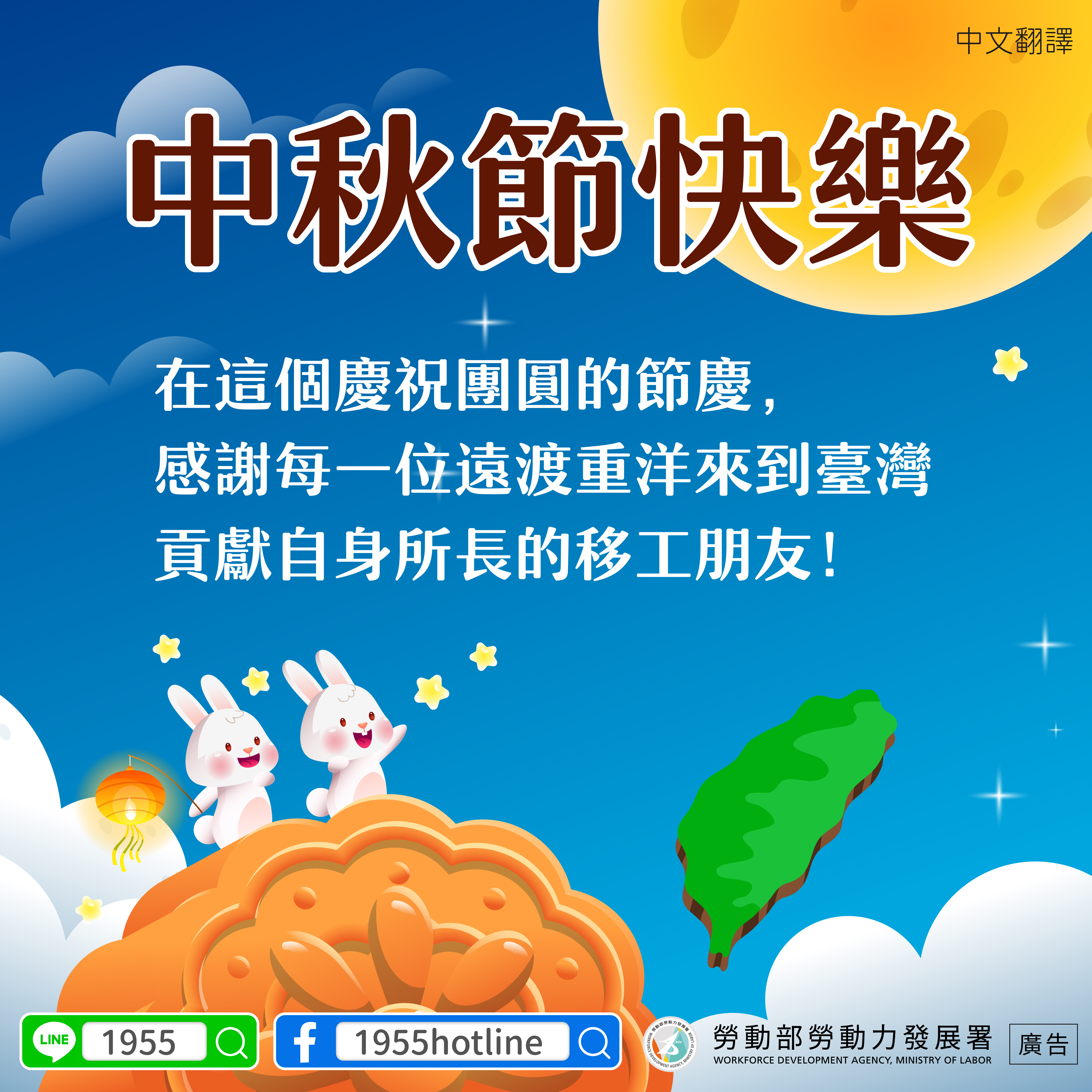 เนื่องในเทศกาลเฉลิมฉลองที่สมาชิกครอบครัวกลับมาอยู่พร้อมหน้ากันขอขอบคุณเพื่อนแรงงานต่างชาติทุกท่านที่จากครอบครัวข้ามน้ำข้ามทะเลมาสร้างคุณูปการให้แก่ไต้หวัน!
