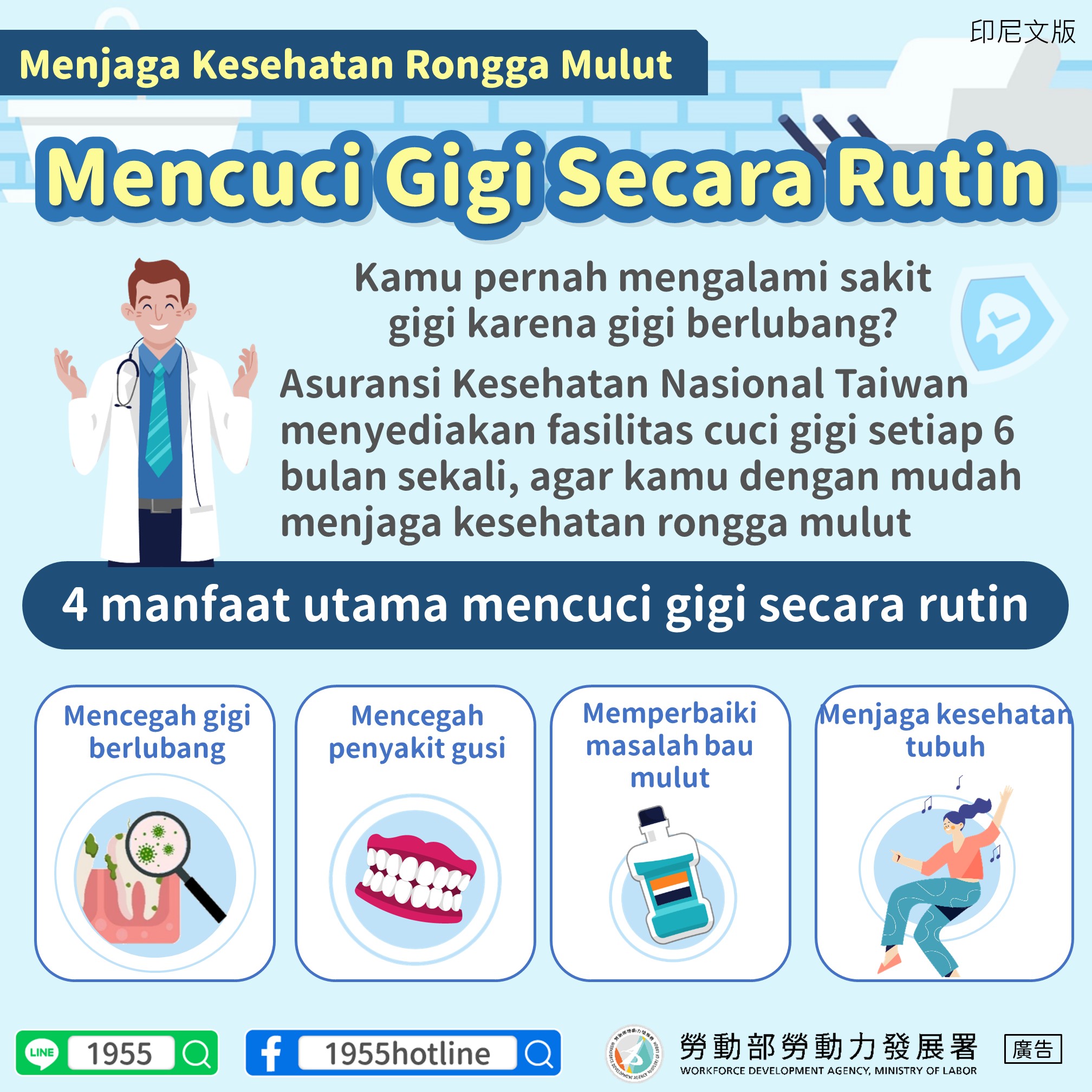 Asuransi Kesehatan Nasional Taiwan menyediakan fasilitas cuci gigi setiap 6 bulan sekali, agar kamu dengan mudah menjaga kesehatan rongga mulut