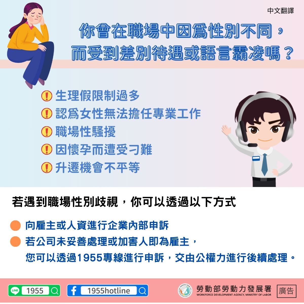 LINE@移點通-你曾在職場中因為性別不同, 而受到差別待遇或語言霸凌嗎?【職場性別歧視】-多國語言版