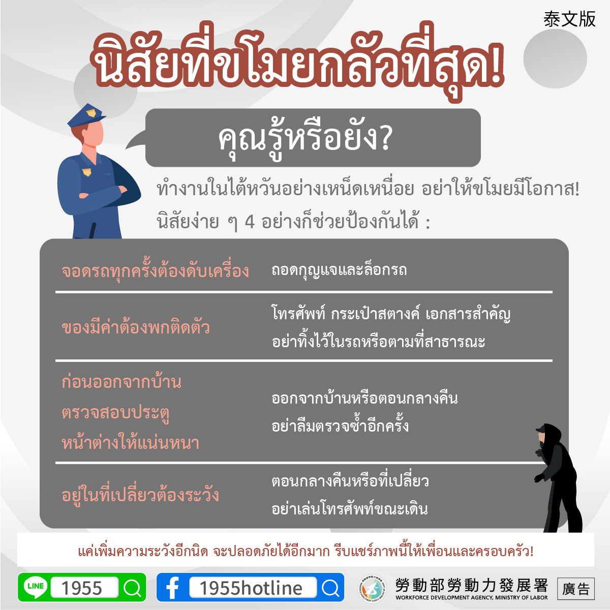 แค่เพิ่มความระวังอีกนิด จะปลอดภัยได้อีกมาก รีบแชร์ภาพนี้ให้เพื่อนและครอบครัว!