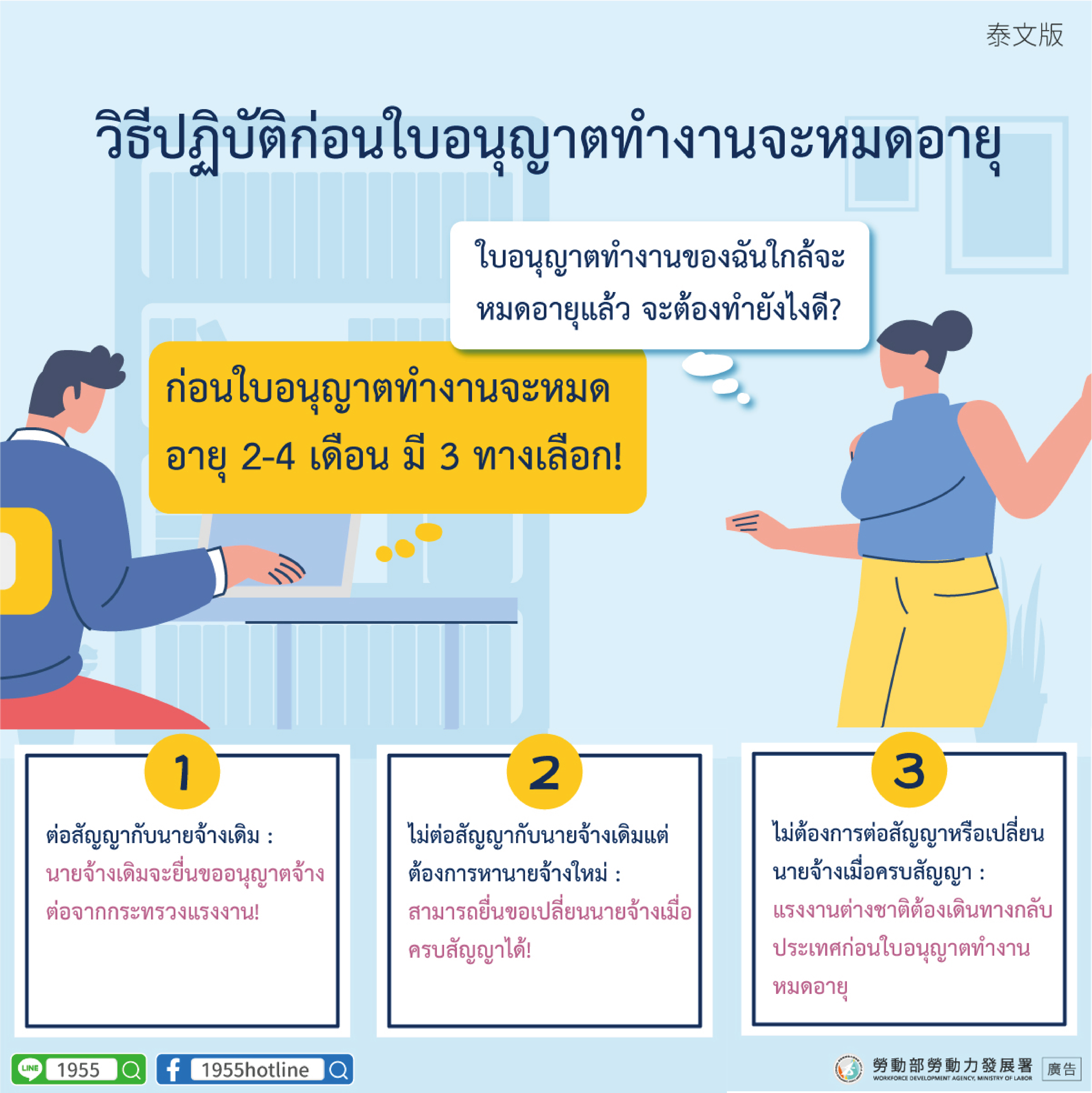 B:กอนใบอนุญาตทำงานจะหมด อายุ 2-4 เดือน มี 3 ทางเลือก!