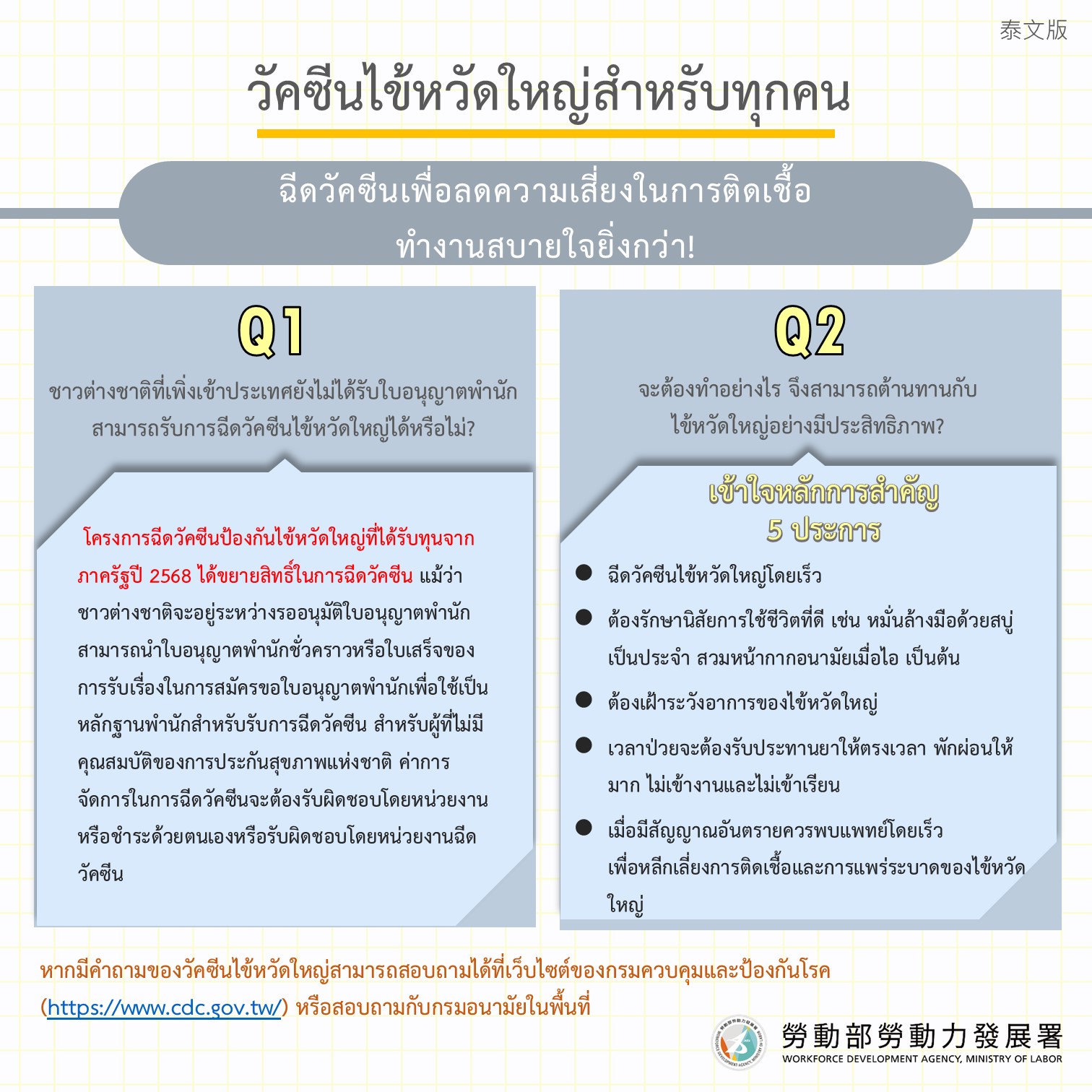 Q1.ชาวต่างชาติที่เพิ่งเข้าประเทศยังไม่ได้รับใบอนุญาตพำนัก สามารถรับการฉีดวัคซีนไข้หวัดใหญ่ได้หรือไม่?