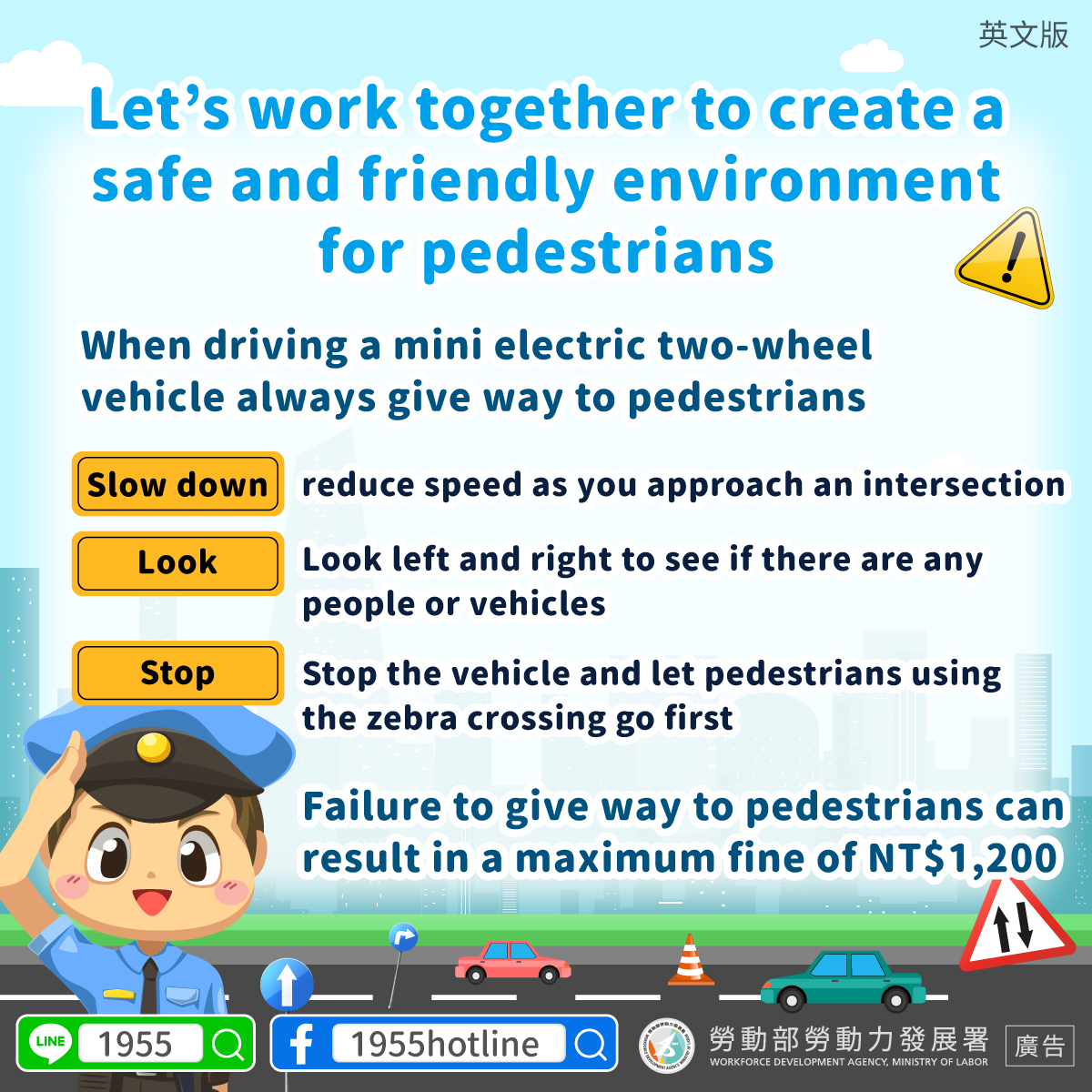 Failure to give way to pedestrians can result in a maximum fine of NT$1,200