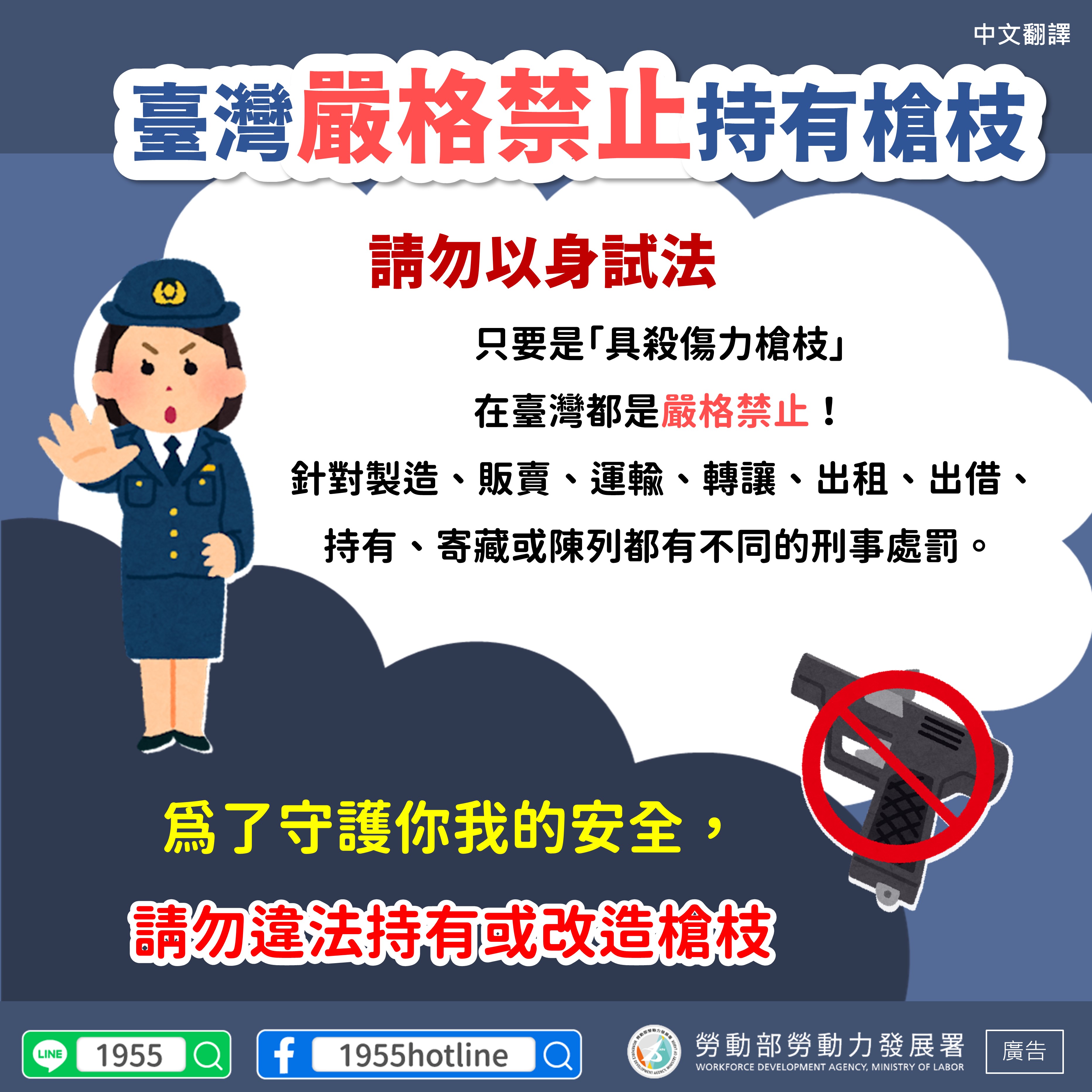 LINE@移點通-臺灣嚴格禁止持有槍枝【槍枝管制】-多國語言版