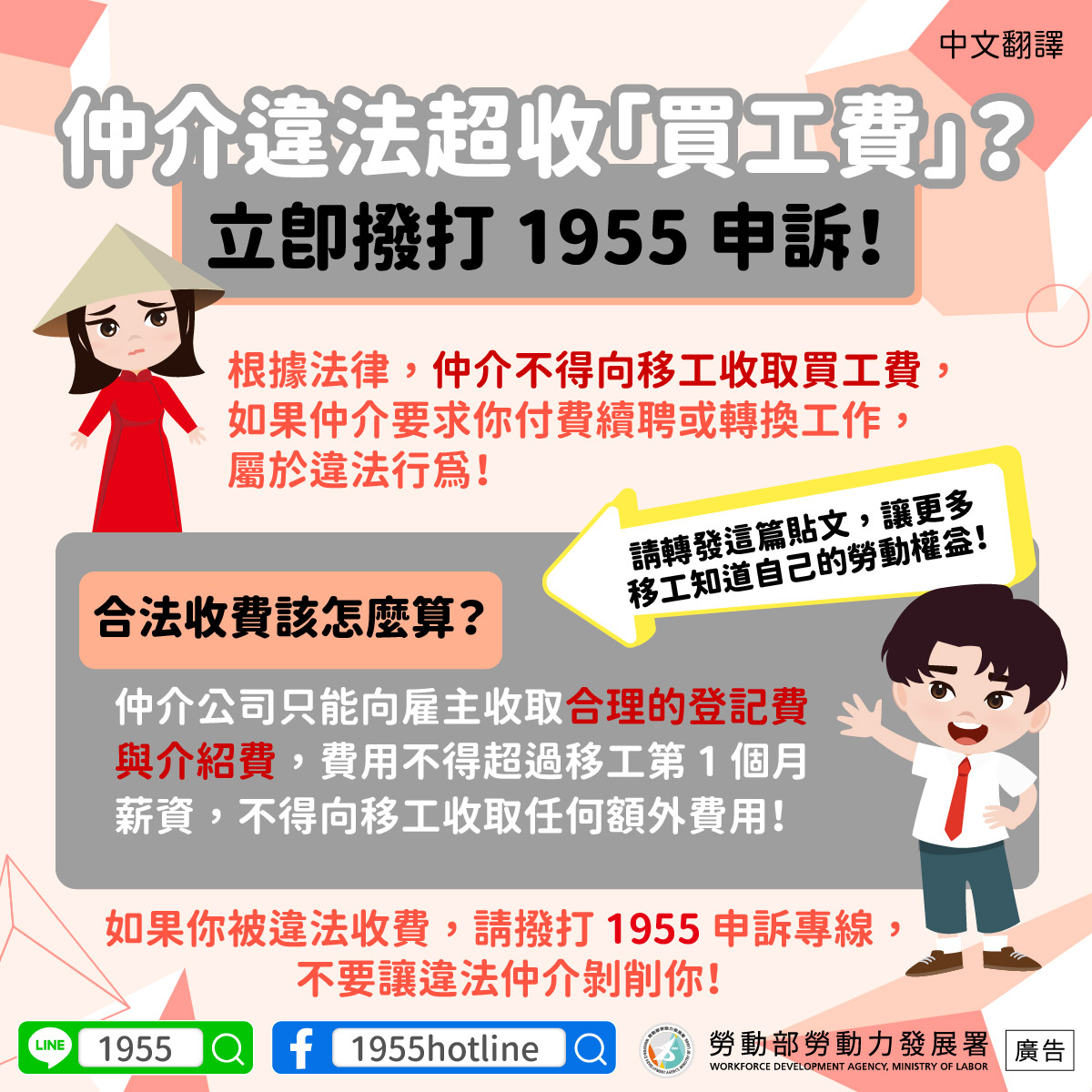 LINE@移點通-【仲介違法超收買工費 立即撥打1955申訴!-勞權】-多國語言版