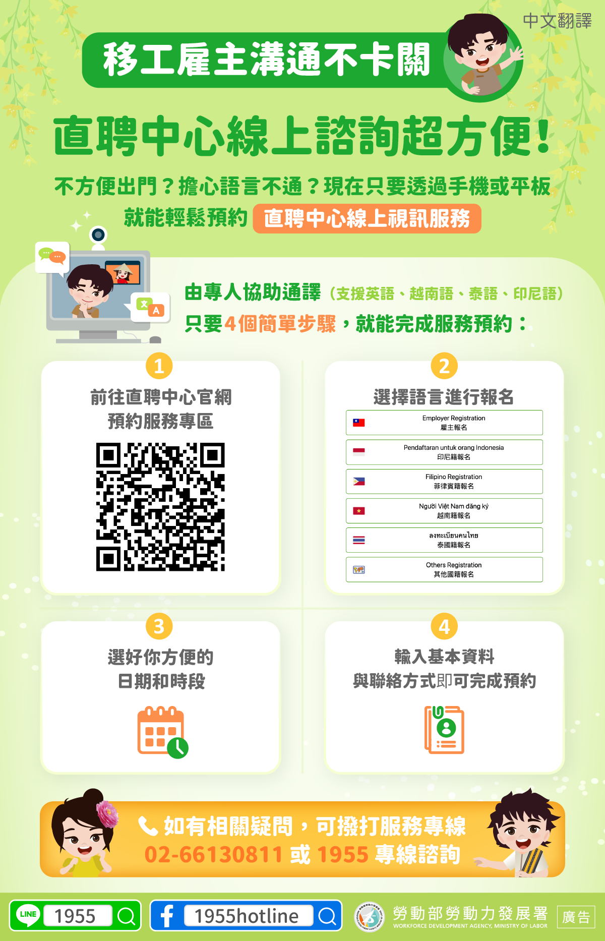 ‧[另開新視窗]【移工雇主溝通不卡關,直聘中心線上諮詢超方便!-勞權】