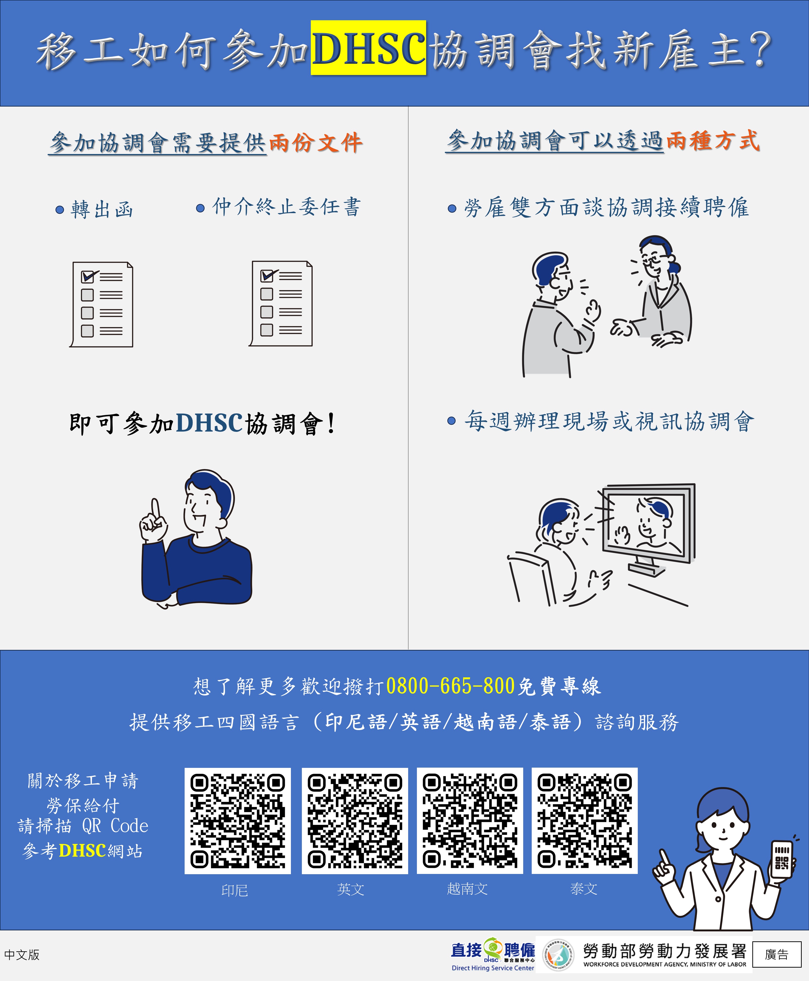[另開新視窗]移工如何申請參加直聘中心(DHSC)協調會找新雇主