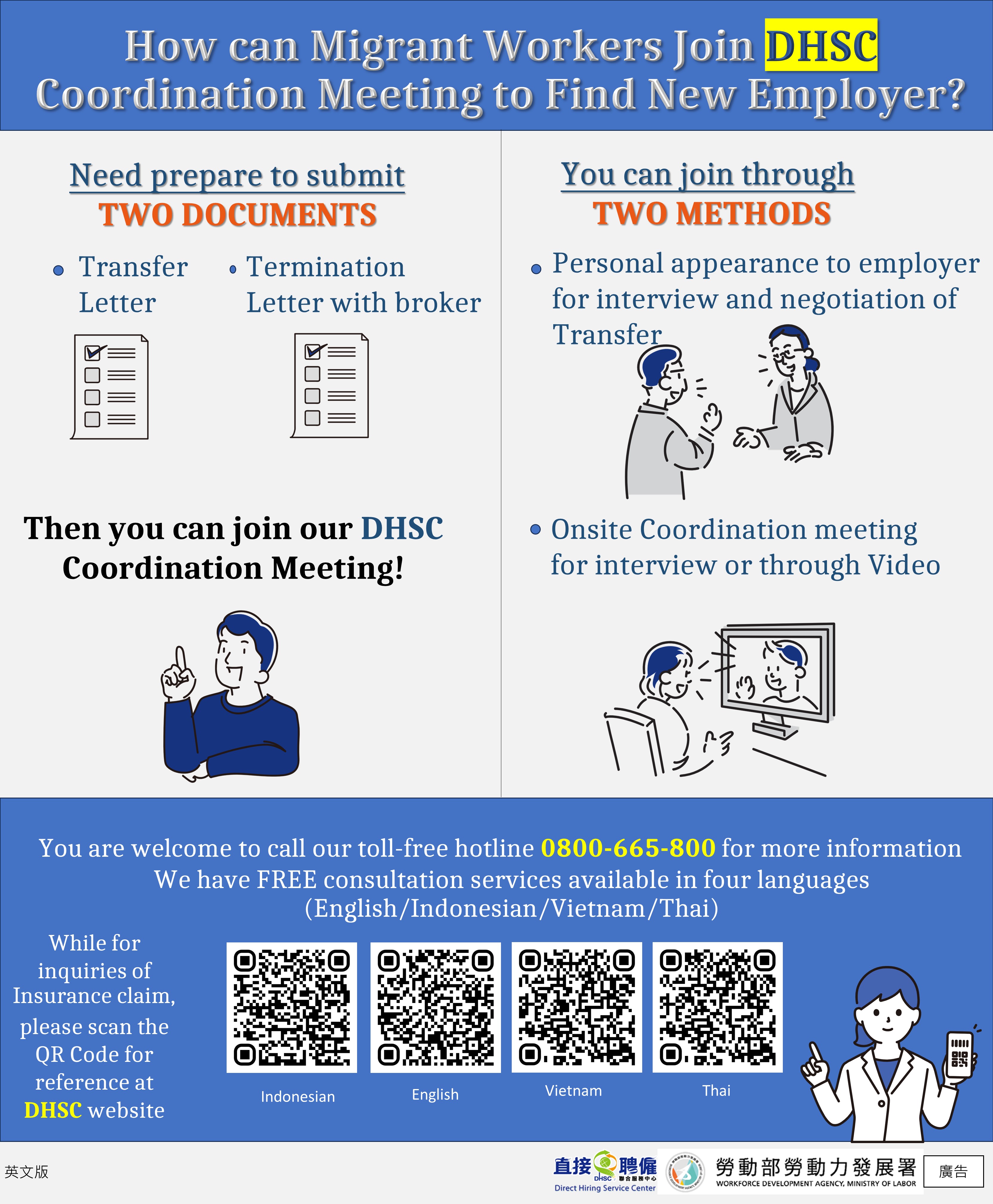 直聘中心-移工如何申請參加直聘中心(DHSC)協調會找新雇主-多國語言版