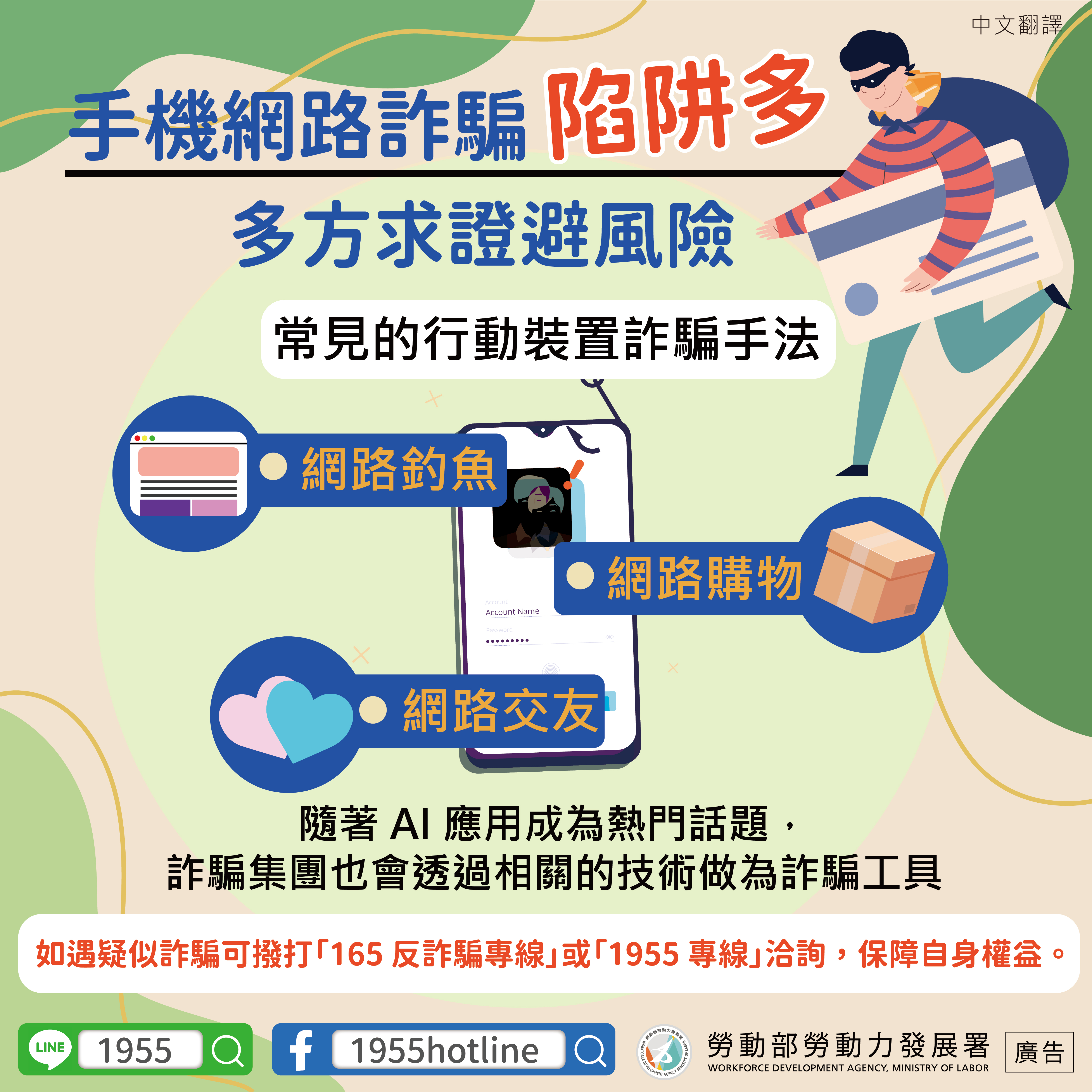LINE@移點通-手機網路詐騙陷阱多,多方求證避風險【網路詐騙-當心 AI 科技】-多國語言版