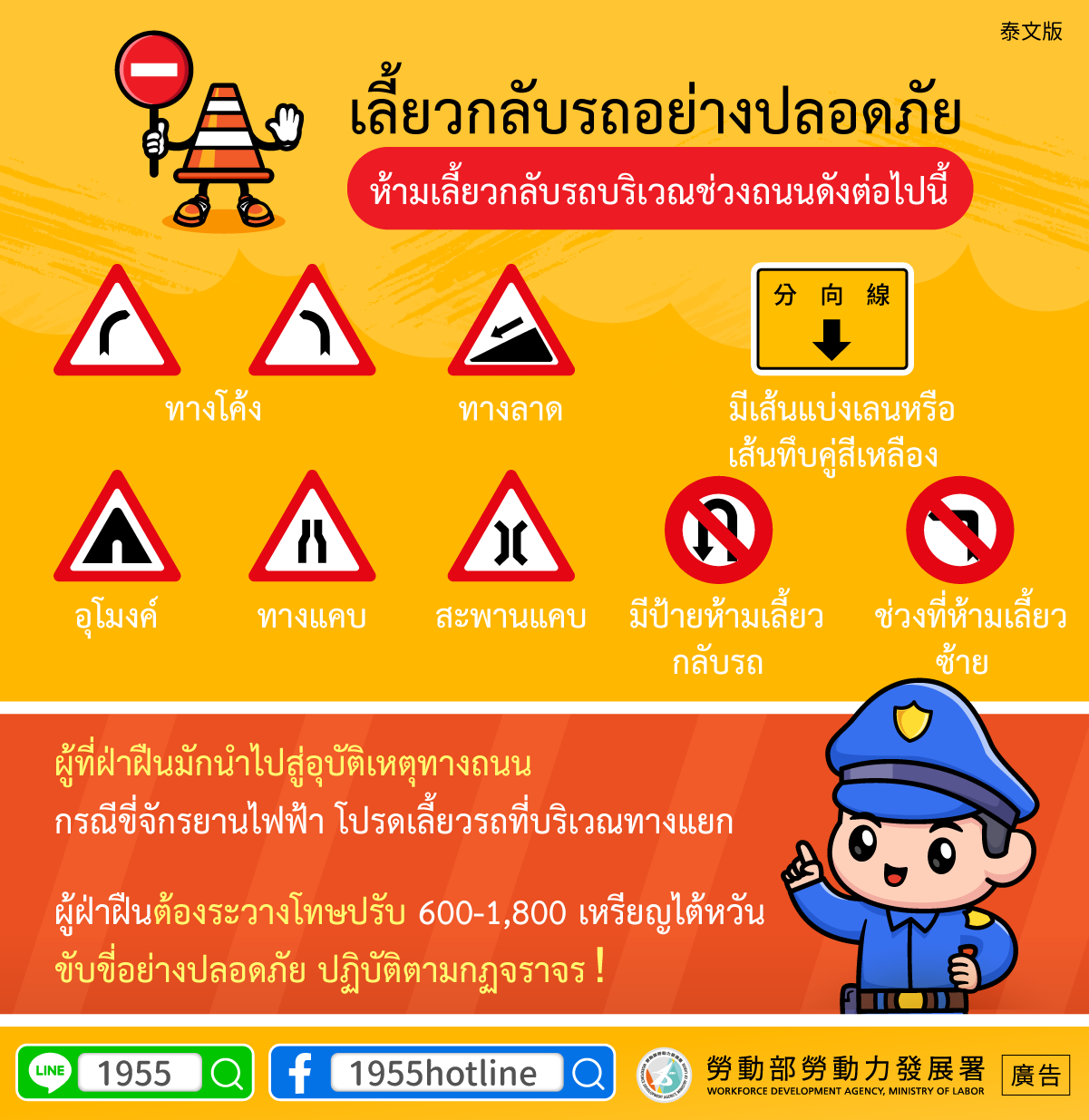 ผู้ฝ่าฝืนต้องระวางโทษปรับ 600-1,800 เหรียญไต้หวันขับขี่อย่างปลอดภัย ปฏิบัติตามกฏจราจร!