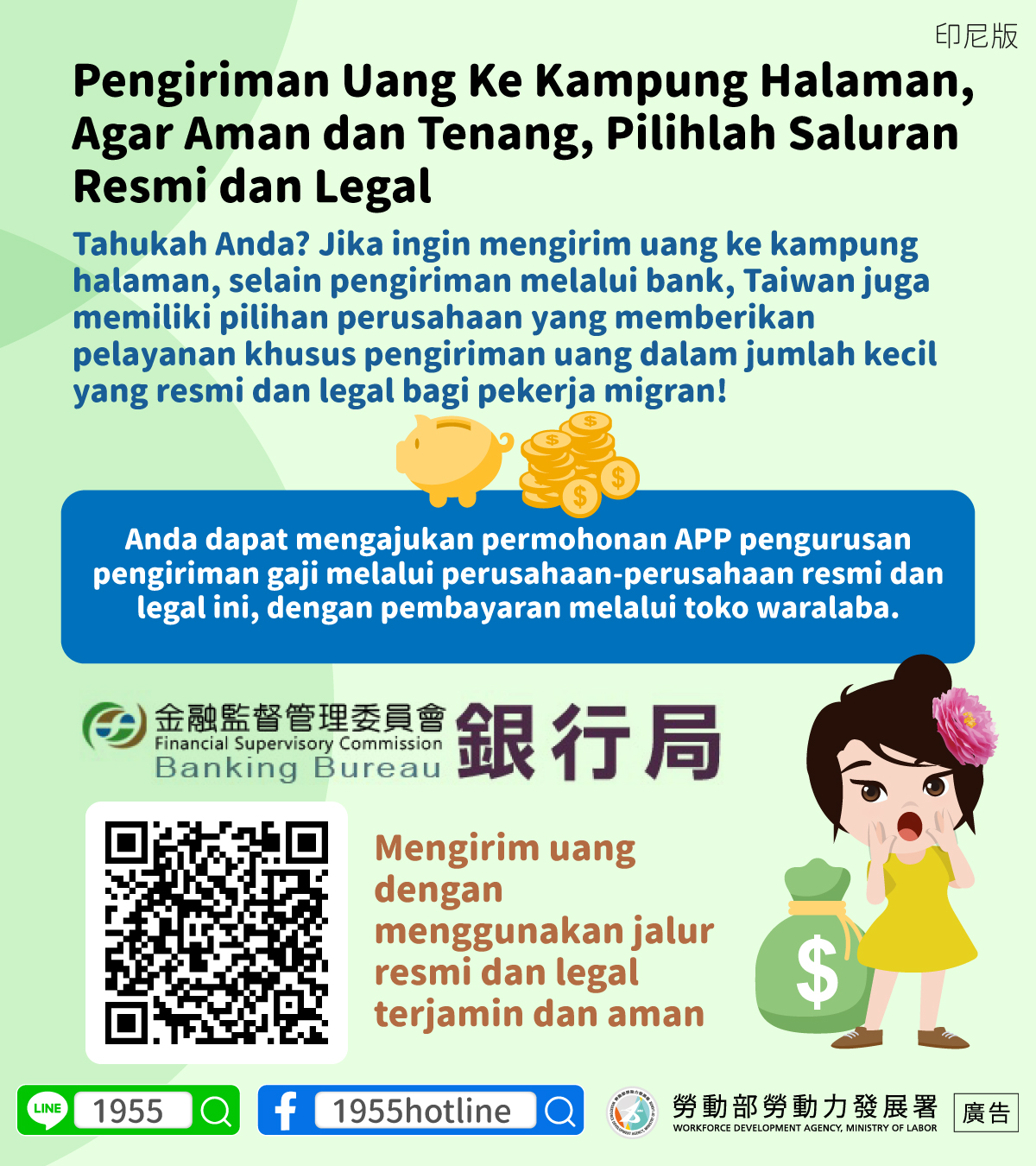 Tahukah Anda? Jika ingin mengirim uang ke kampung halaman, selain pengiriman melalui bank, Taiwan juga memiliki pilihan perusahaan yang memberikan pelayanan khusus pengiriman uang dalam jumlah kecil yang resmi dan legal bagi pekerja migran!