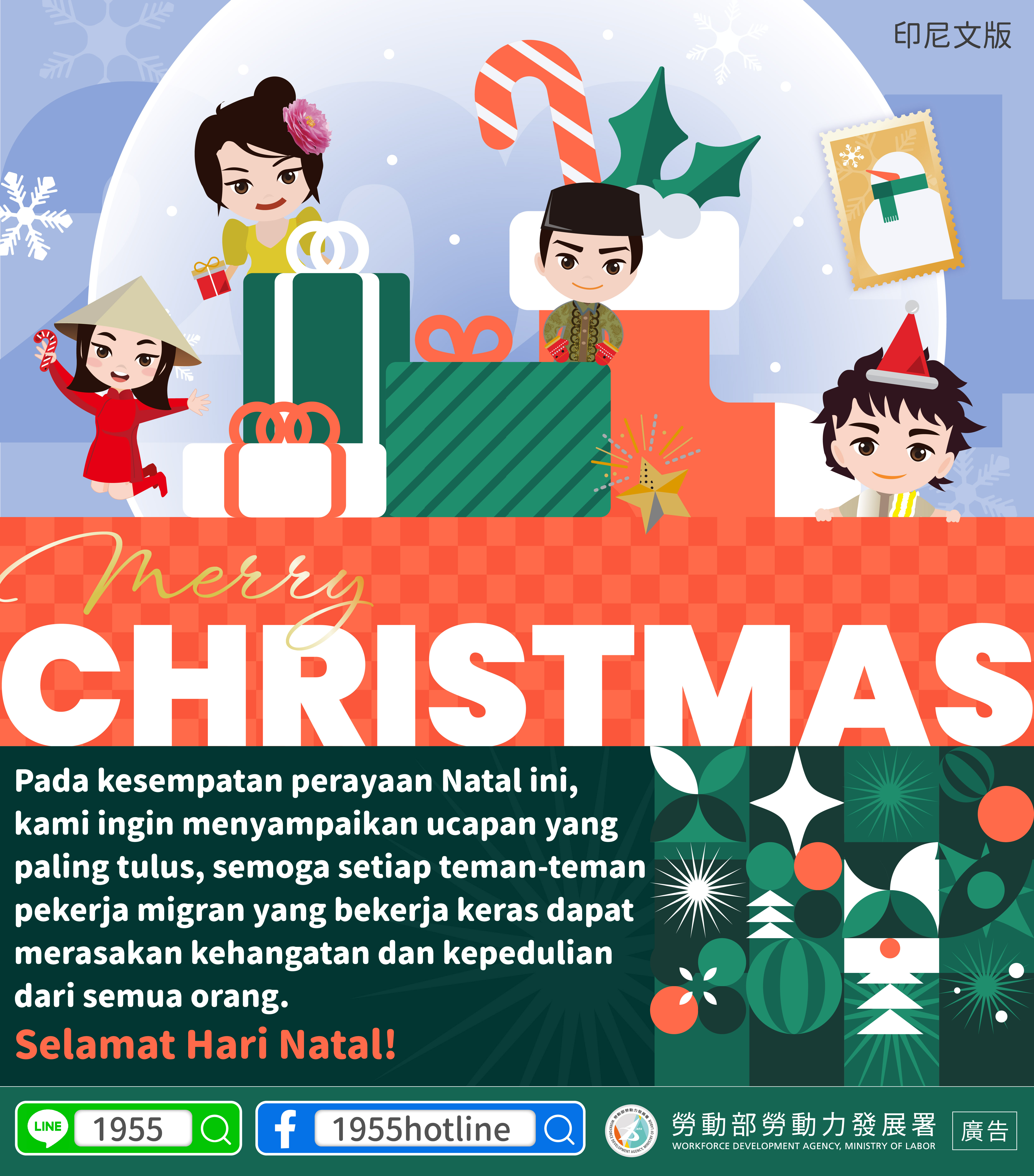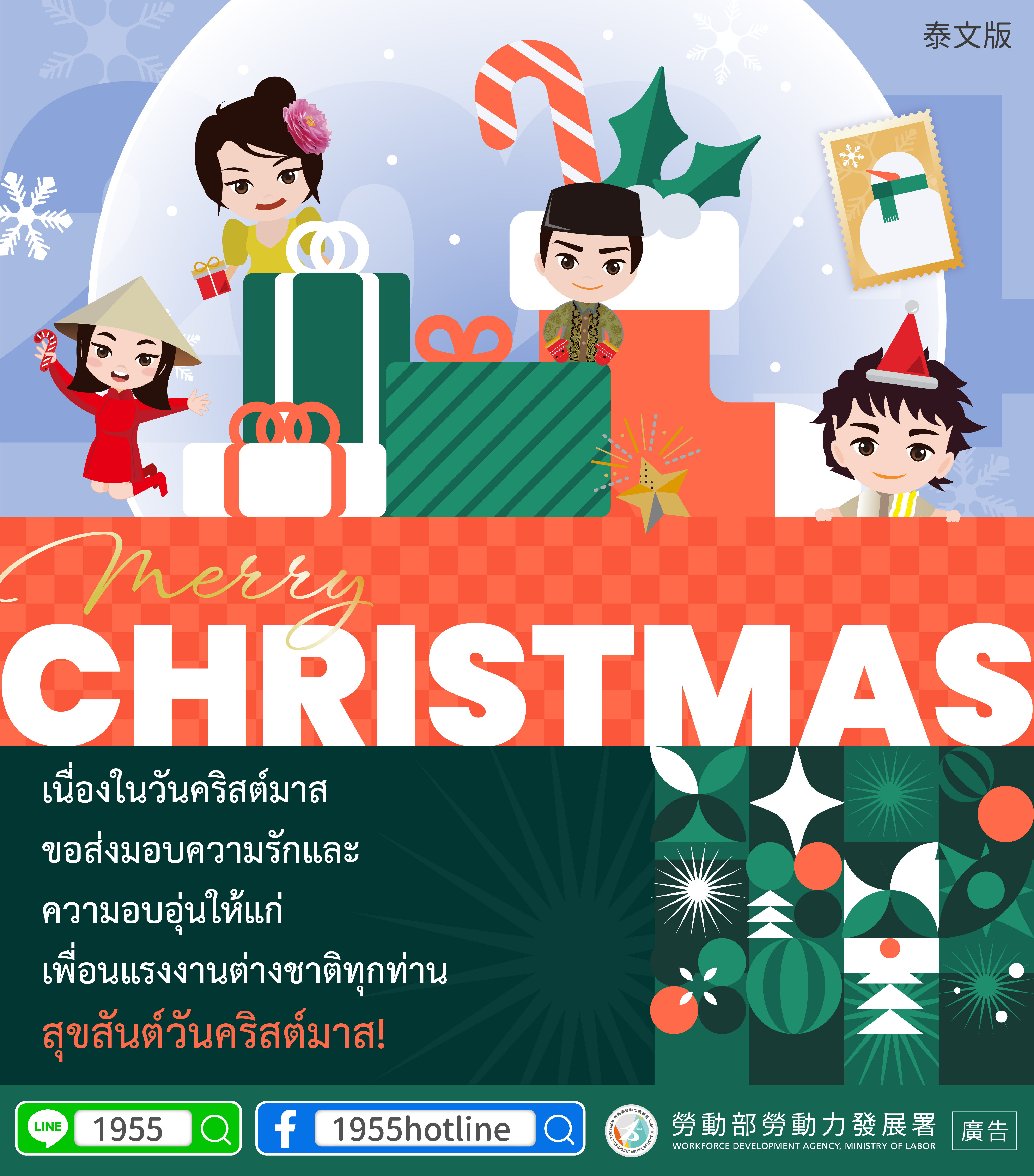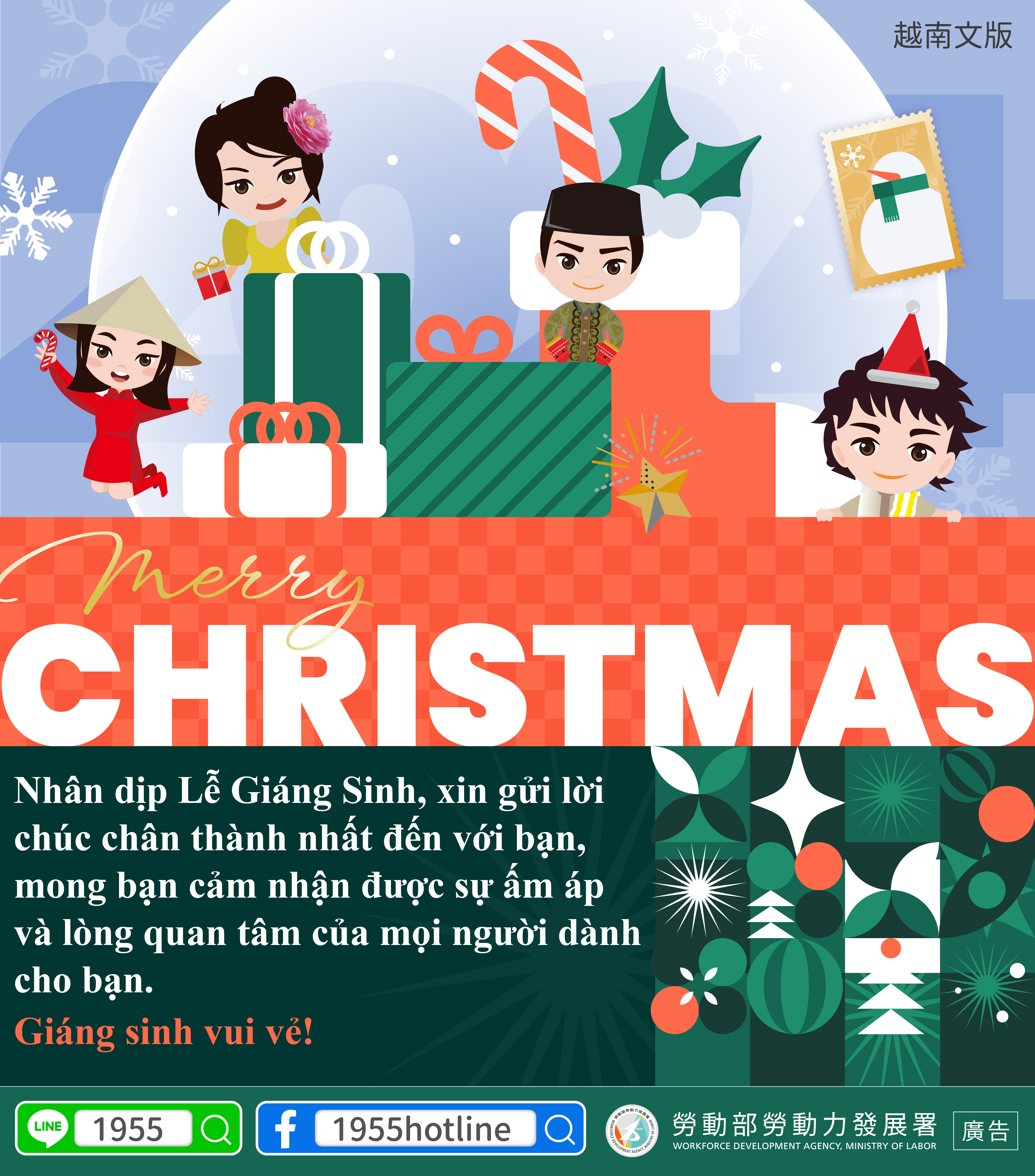 ▍The Ministry of Labor extends its sincere blessings to every hard- working foreign worker in Taiwan this Christmas. We hope you feel the warmth and care of those around you during the festive season.