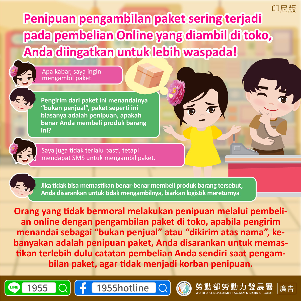 Orang yang tidak bermoral melakukan penipuan melalui pembelian online dengan pengambilan paket di toko, apabila pengirim menandai sebagai “bukan penjual” atau “dikirim atas nama”, kebanyakan adalah penipuan paket, Anda disarankan untuk memas- tikan terlebih dulu catatan pembelian Anda sendiri saat pengambilan paket, agar tidak menjadi korban penipuan