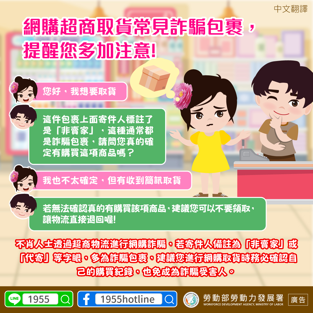 LINE@移點通-網購超商取貨常見詐騙包裹,提醒您多加注意!【超商取貨詐騙手法】-多國語言版