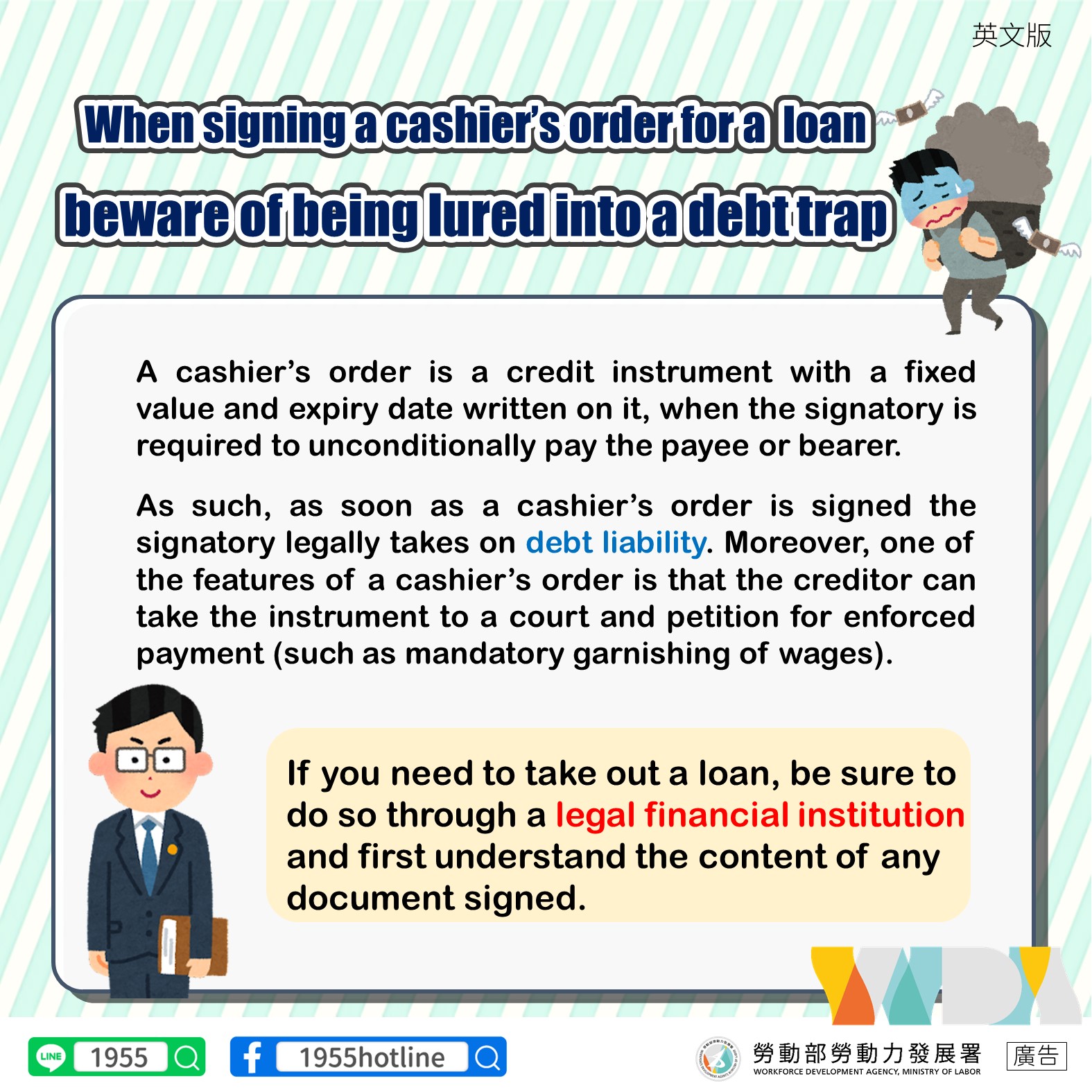 ▍When signing a cashier’s order for a loan beware of being lured into a debt trap