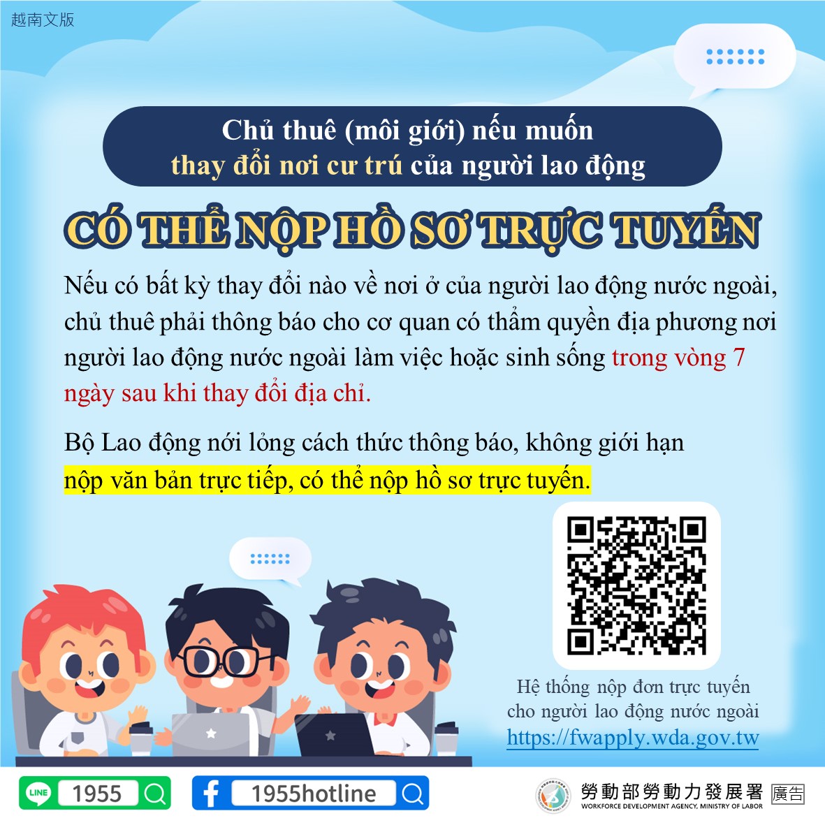 LINE@移點通-雇主(仲介)辦理所聘僱外國人住宿地點變更可採網路申辦!-多國語版本