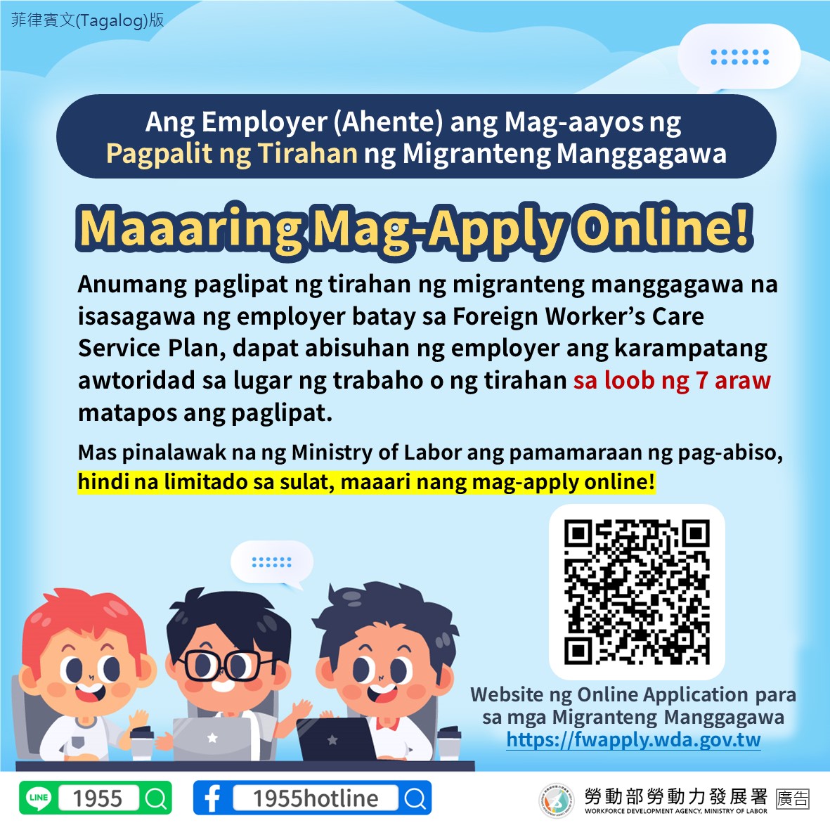 Ang Employer (Ahente) ang Mag-aayos ng Pagpalit ng Tirahan ng Migranteng Manggagawa Maaaring Mag-Apply Online!